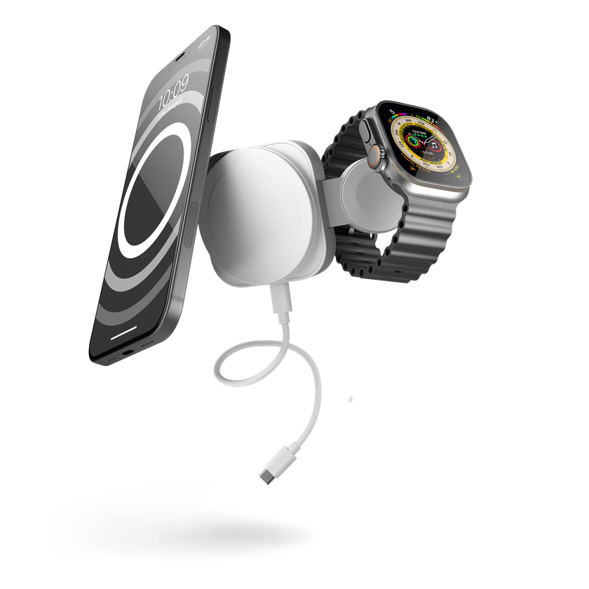 Док-станцию можно брать с собой в путешествия. Новинка способна заряжать сразу два устройства: iPhone и Apple Watch.