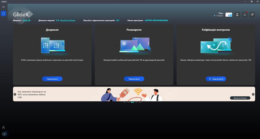 GlideX - программа для удобного подключения смартфона к ноутбуку, использования его как дополнительного дисплея и быстрого переноса данных.