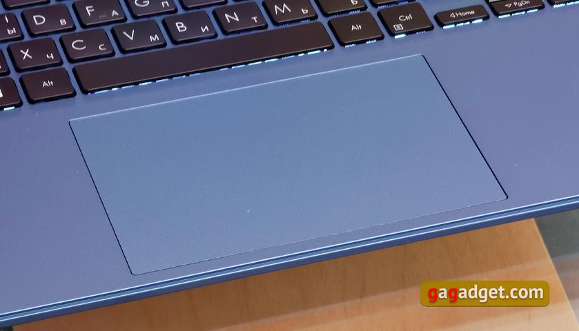 Тачпад хоть и не стеклянный, но имеет довольно большие размеры 129.7x82.1 мм, приятное гидрофобное покрытие и хорошую чувствительность. К его работе претензий не возникало, его вполне достаточно для работы с документами и браузером.