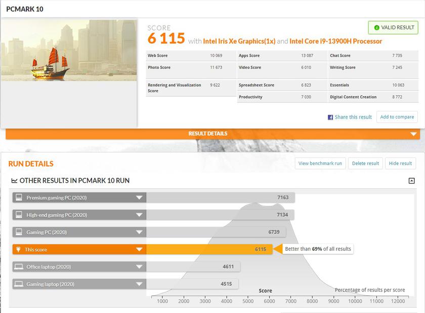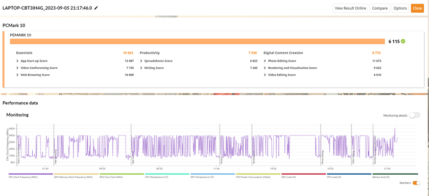 В ноутбуке используется очень мощный процессор Intel Core i9, хоть и не с самым высоким показателем TDP. Но он демонстрирует очень высокую производительность в соответствующих синтетических тестах. Графика Intel Arc A350M действительно существенно мощнее, чем интегрированные решения. В целом, производительности ноутбука достаточно для тяжелых задач, а также обработки фото и видео. Но для тяжелых 3D-редакторов все же стоит смотреть что-то с более мощной графикой.