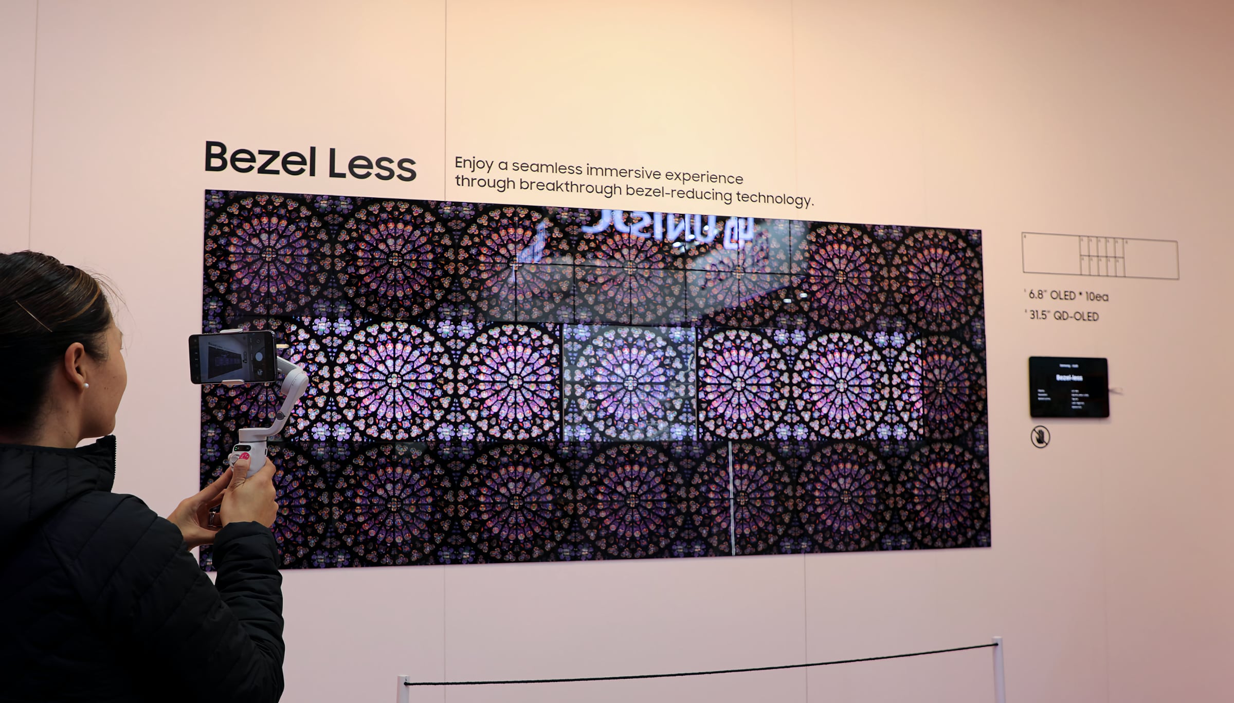 Модульные OLED-плитки: идея похожа на MicroLED, но для OLED-технологии - несколько OLED-экранов с рамками всего 0.6 мм можно соединять в один большой дисплей. Швы между панелями минимальны, поэтому получается почти сплошной экран любого размера.