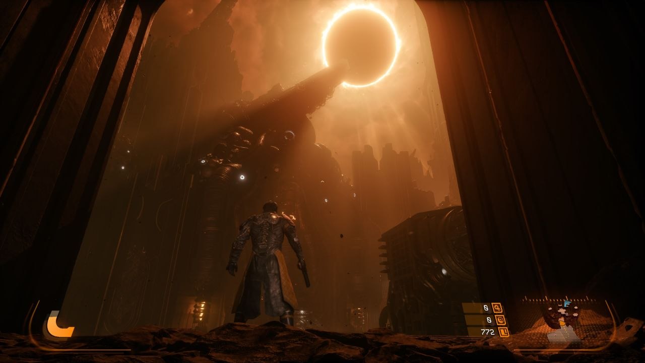 Игровой цикл делится на «до» и «после»: сначала планета кажется относительно стабильной, но потом наступает «Затмение», и всё кардинально меняется. Когда это явление набирает силу, окружающая среда претерпевает сюрреалистические визуальные и геймплейные трансформации. Ставки возрастают: появляются более агрессивные враги и смертоносные снаряды, способные навсегда (в пределах текущего забега) снизить максимальный уровень здоровья.