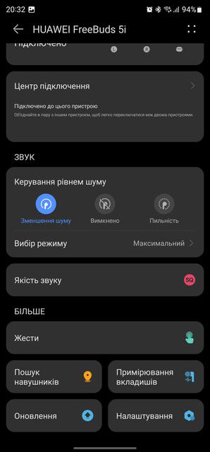 Для всех настроек есть фирменное приложение Huawei AI Life. Но оно, к сожалению, недоступно в Google Play, поэтому надо качать APK-файл с официального сайта отсканировав QR-код в инструкции. Это не очень удобно. В приложении есть переключатель режима шумоподавления: уменьшение шума, выключено и режим бдительности (режим прозрачности). У самого шумоподавления есть три режима: максимальный, сбалансированный и комфортный. Также есть настройки сенсорных жестов и обновления программного обеспечения. Центр подключения отвечает за настройку приоритетного устройства и переключение при одновременном подключении двух устройств. В пункте "Качество звука" можно выбрать приоритет качества звука или подключения. Ниже - эквалайзер. Хотя он очень примитивный: фактически есть только возможность усилить низкие или высокие частоты. "Поиск наушников" позволяет воспроизвести звук на каждом из них. Это действительно полезно, если наушник потерялся где-то в доме. Проверка посадки наушников поможет подобрать оптимальную пару насадок. В пункте "Настройки" можно активировать функцию "Обнаружение ношения": воспроизведение будет автоматически приостановлено если извлечь наушник из уха. Ниже можно активировать низкую задержку звука и увидеть, какой используется кодек для передачи.