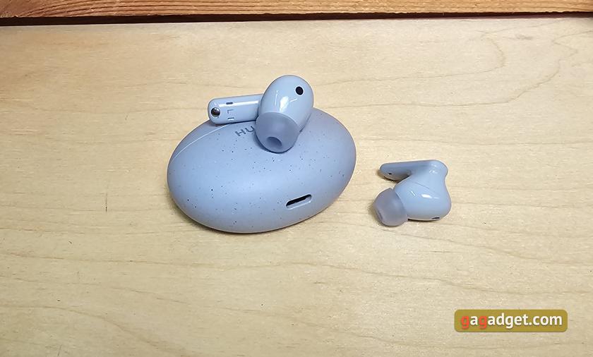 Внутри каждого наушника установлено по аккумулятору на 55 мАч, кейс оборудован аккумулятором на 410 мАч. Huawei обещает, что наушники могут работать до 6 часов с шумоподавлением и до 7.5 часов без. Вместе с кейсом эти показатели составляют 18.5 и 28 часов соответственно. Есть поддержка быстрой зарядки: 15 минут в кейсе обеспечат 4 часа музыки. Полная зарядка наушников занимает час, а кейса - чуть меньше двух часов. Реальное время работы очень зависит от громкости, кодека передачи данных и тому подобное. У меня получилось около 5 часов с LDAC, громкость примерно 85%.