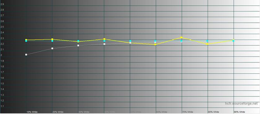 Замеры колориметром показали, что максимальная яркость составляет далеко не рекордные для IPS-экранов 358.716 кд/м2, хотя на ярком солнце с читаемостью все в полном порядке. Яркость черного поля — 0.229 кд/м2 и высокий показатель контрастности — 1566:1. Возможно вопрос конкретного сэмпла, а возможно и сознательное решение, дабы снизить минимальную яркость, а соответственно и энергопотребление при включенном Always-on Display. Калибровка не лучшая: существенный перебор синего и недостаток красного. Картинка холодная, опять же, возможно особенность инженерного образца: