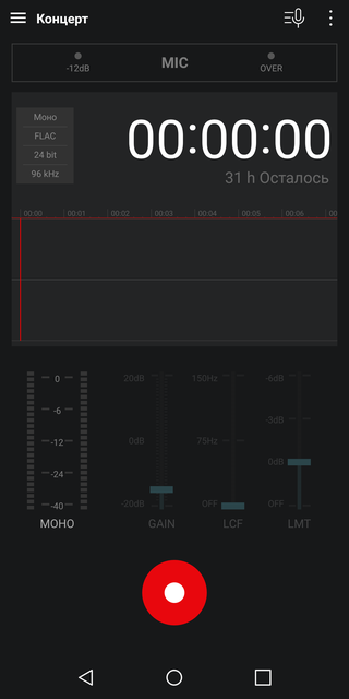 Диктофон тоже навороченный: умеет писать FLAC, есть пресет для записи концертов и собственные настройки с чувствительностью и фильтрами разных частот для разного окружения. Есть индикация "клипа" и уровня по каналам. И да, моно/стерео переключается автоматом при повороте с вертикального в горизонтальное положение. Подобное есть для видеозаписи и это все действительно работает: