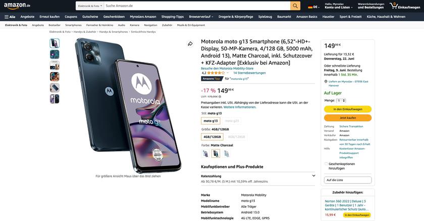 - Moto G13 4/128 ГБ — check price on amazon.