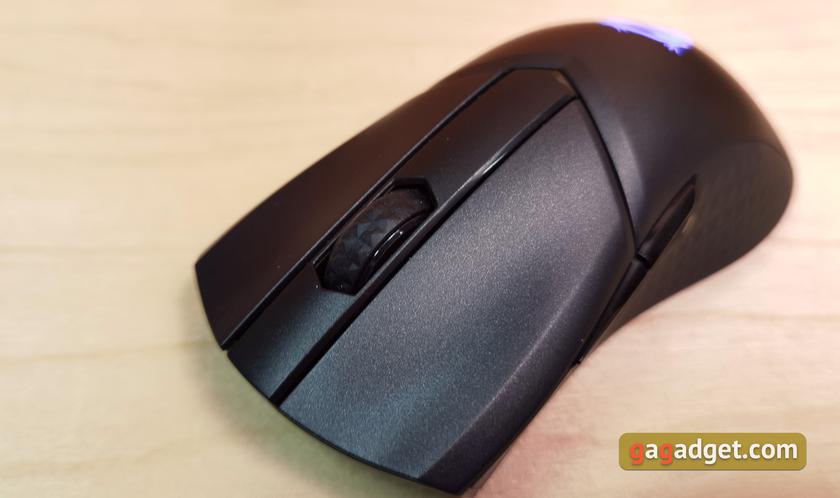 Колесо прокрутки также имеет текстурированное резиновое покрытие. В отличие от большинства современных геймерских мышек, подсветки в данном случае нет. Колесо прокрутки также очень хорошо зафиксировано и не ходит из стороны в сторону.