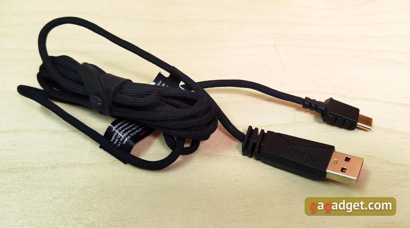 Кабель имеет длину 2 метра. Тканевая оплетка мягкая и легкая. Трудно сказать, насколько выносливая, но пользоваться MSI Clutch GM31 Lightweight Wireless в проводном режиме очень удобно. Кабель легкий и без проблем принимает необходимую форму.