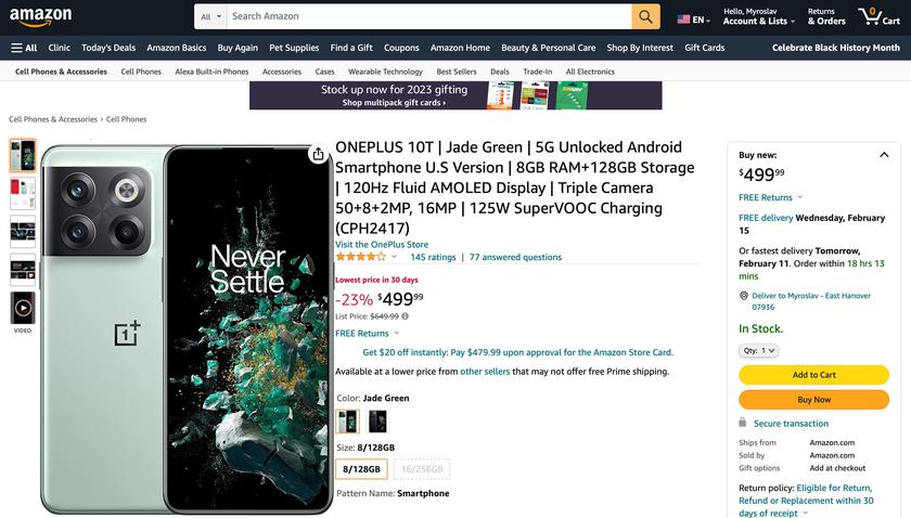 - OnePlus 10T 8/128 ГБ — check price on amazon.