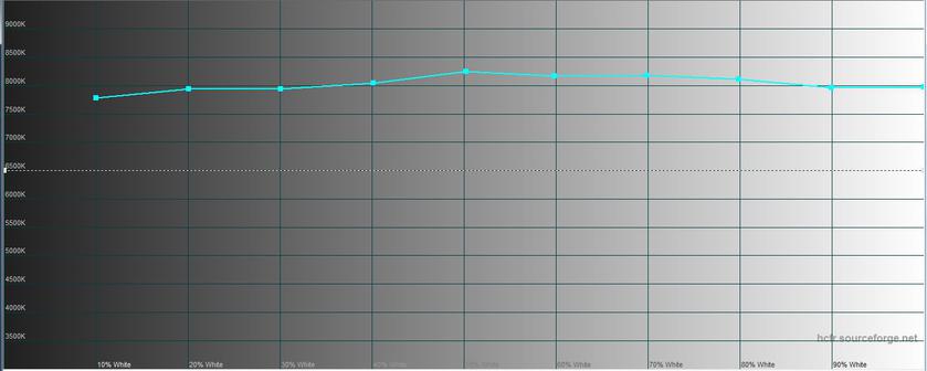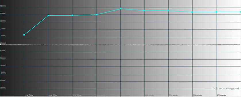 Замеры показали что в "естественном" режиме максимальная яркость экрана составляет 403.667 кд/м², экран в целом неплохо откалиброван, хотя небольшой перекос в синие оттенки есть. Цветовой охват немного не совпадает с sRGB: