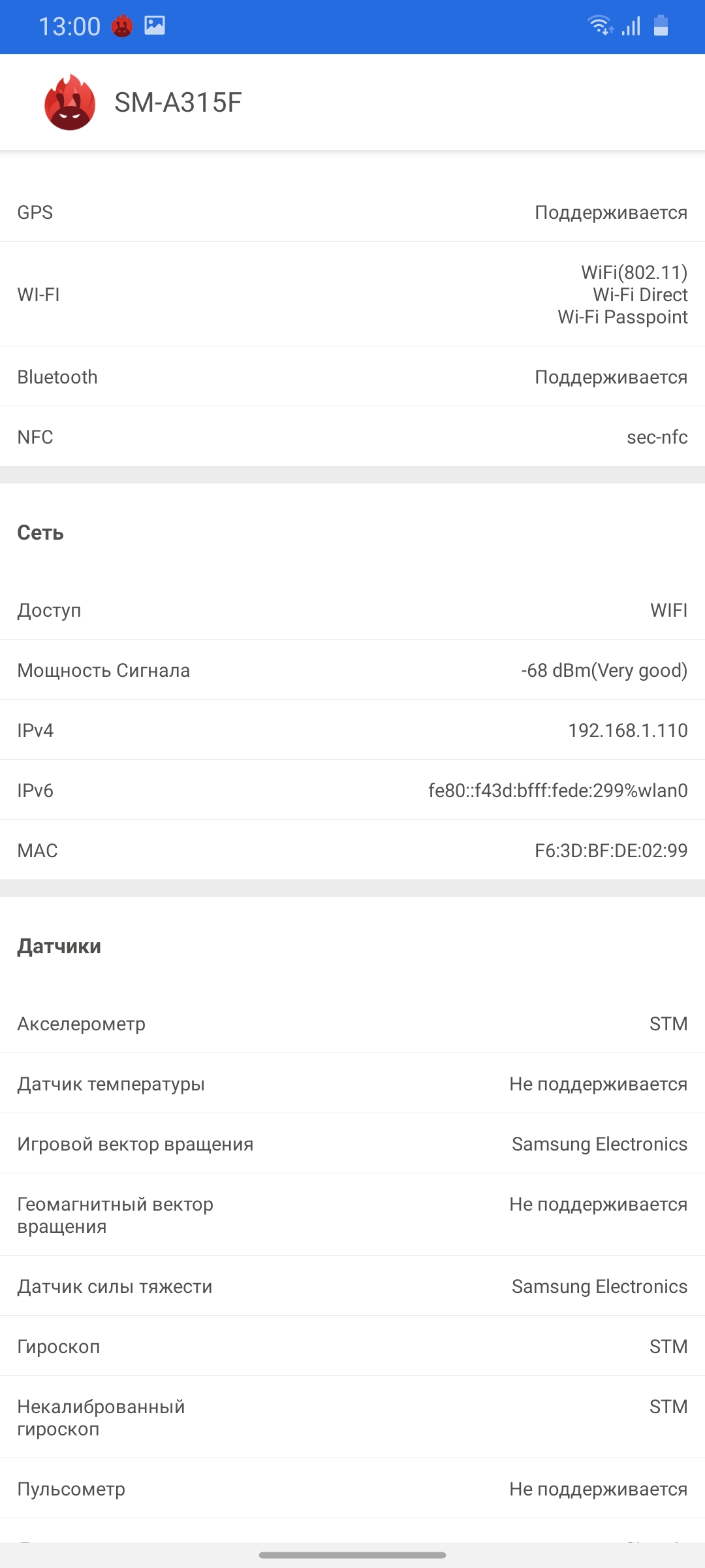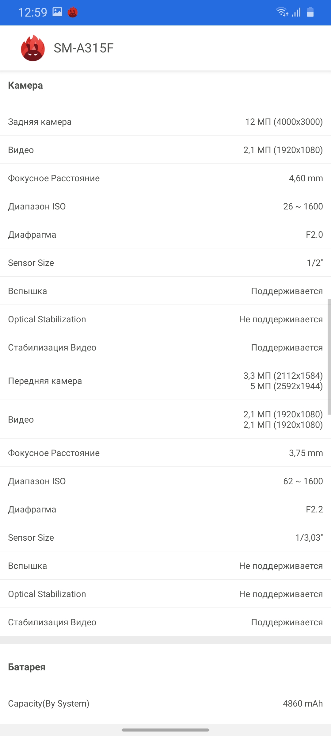 | Технические характеристики Samsung Galaxy A31 | |
