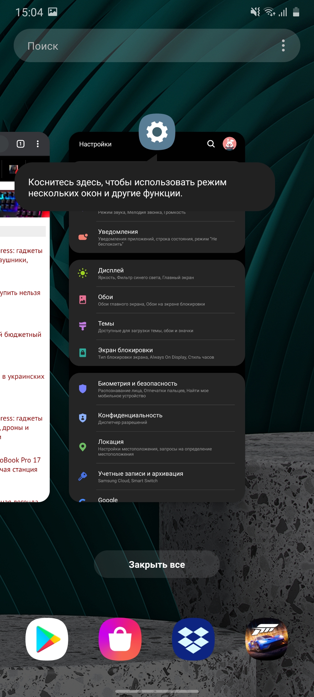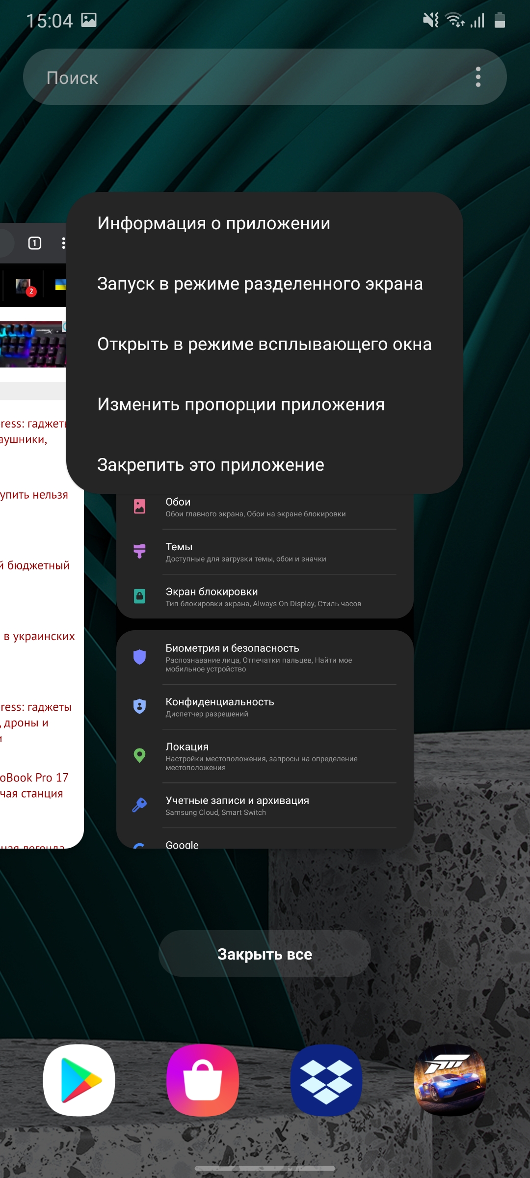 Диспетчер приложений, двухоконный режим, возможность открыть приложение в окне или свернуть его до ярлыка: