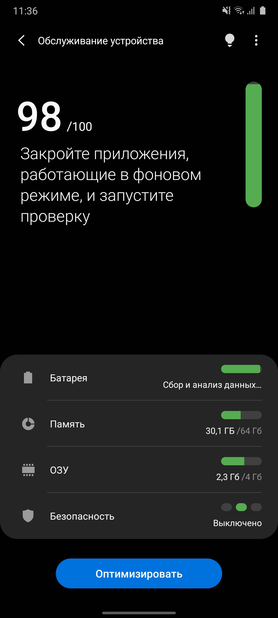 Несмотря на то, что Samsung Galaxy A31 не относится к дорогим моделям производителя, он получил подэкранный сканер отпечатков пальцев. Он оптический, то есть с мокрыми руками он не слишком эффективен. Но в повседневном использовании он оказался вполне быстрым и точным. Не настолько, как ёмкостные сенсоры, но близко. Ошибок также практически не бывает. Распознавание лица присутствует, но шустрым его назвать нельзя. Даже при хорошем освещении смартфону требуется около секунды (иногда и чуть больше), чтобы распознать лицо владельца. Так что в данном случае это скорее вспомогательный вариант. Как раз на случай мокрых рук.