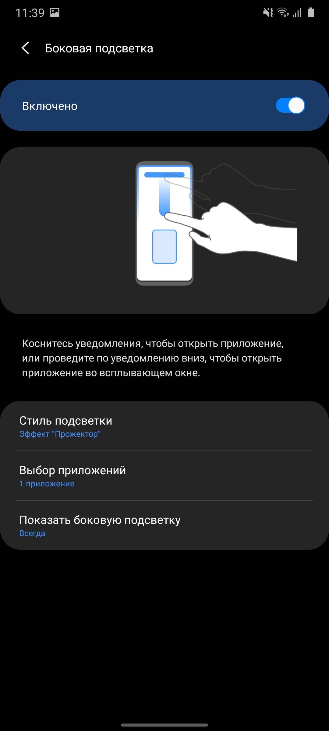 Стандартные панели Edge, которые уже давно перестали быть "эксклюзивом" флагманов и присутствуют почти во всех моделях Samsung: