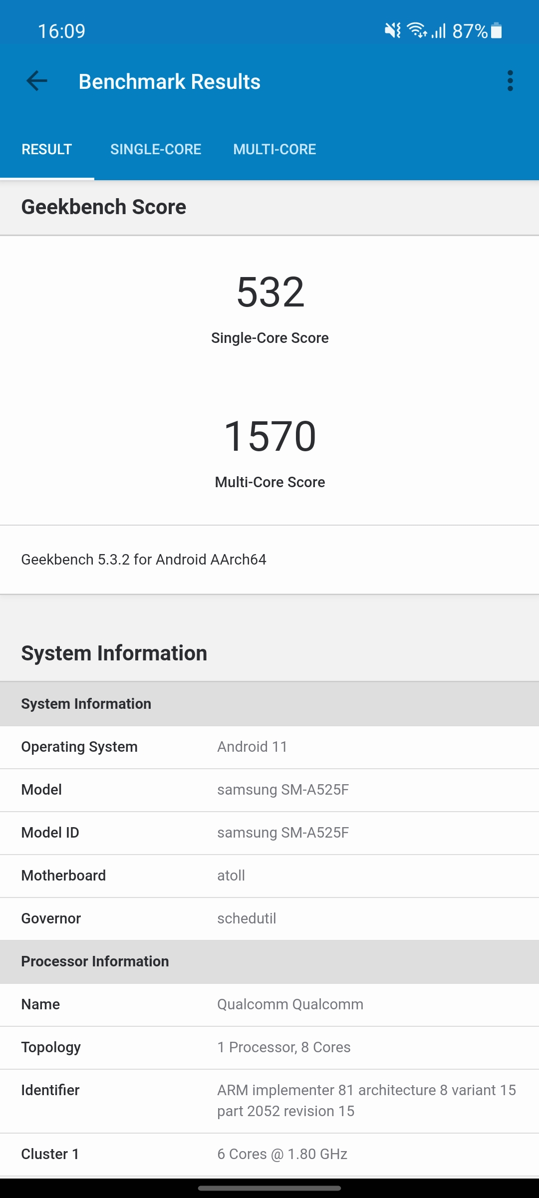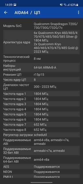 | Процессор | 64-битный 8-нм Qualcomm Snapdragon 720G, 2x2.3 ГГц Kryo 465 Gold + 6x1.8 ГГц Kryo 465 Silver, графика Adreno 618 | |