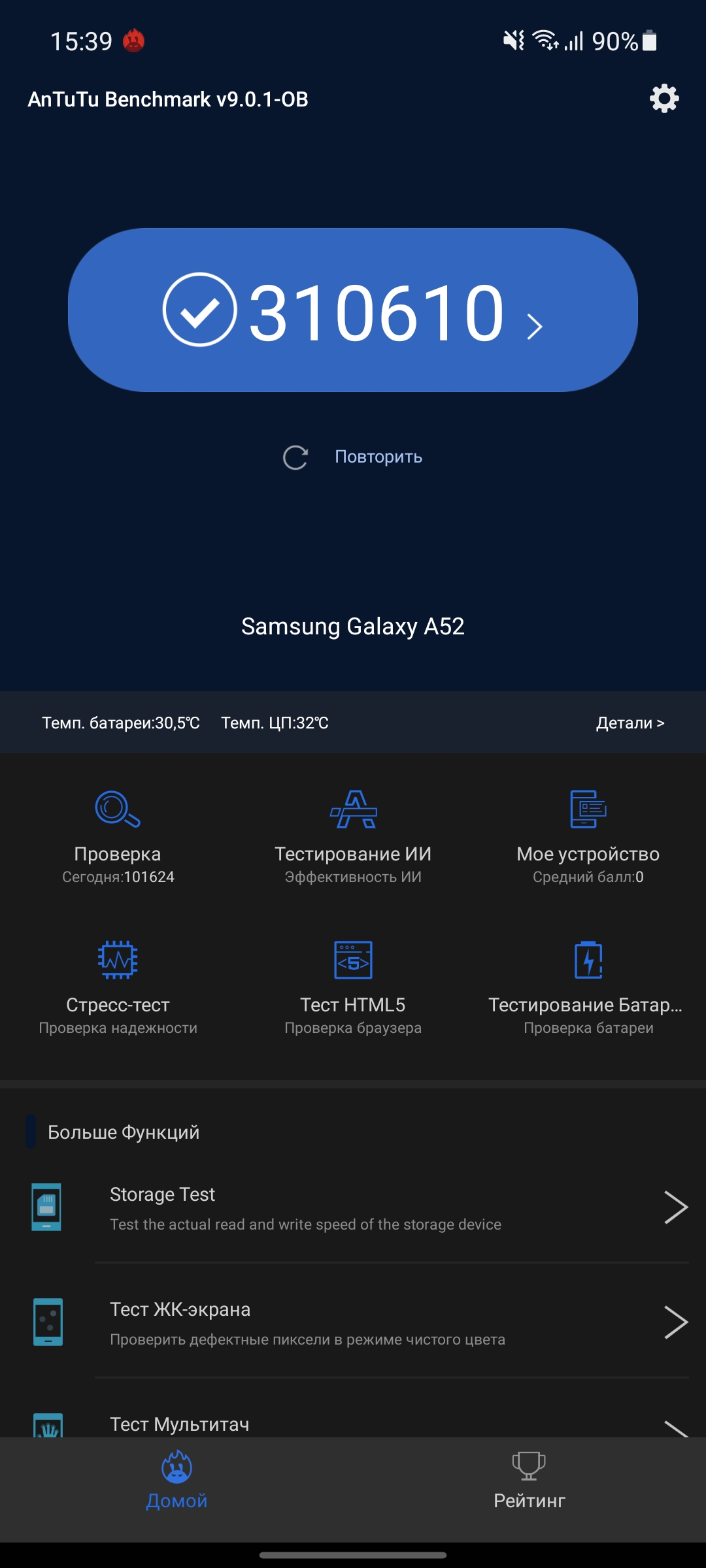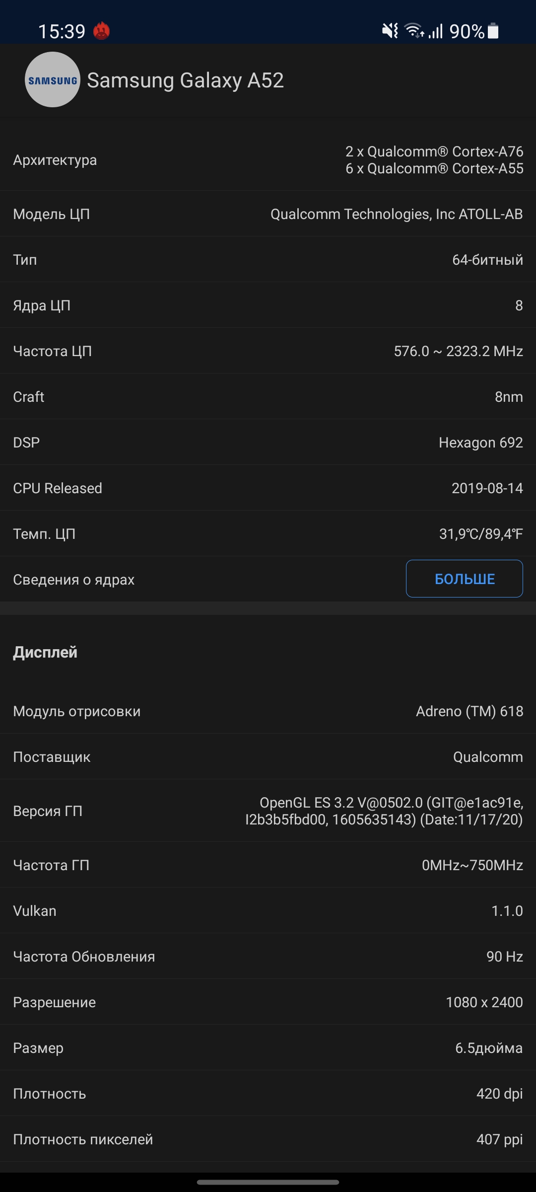 Результаты тестов Samsung Galaxy A52 не особо отличаются от Galaxy A72: