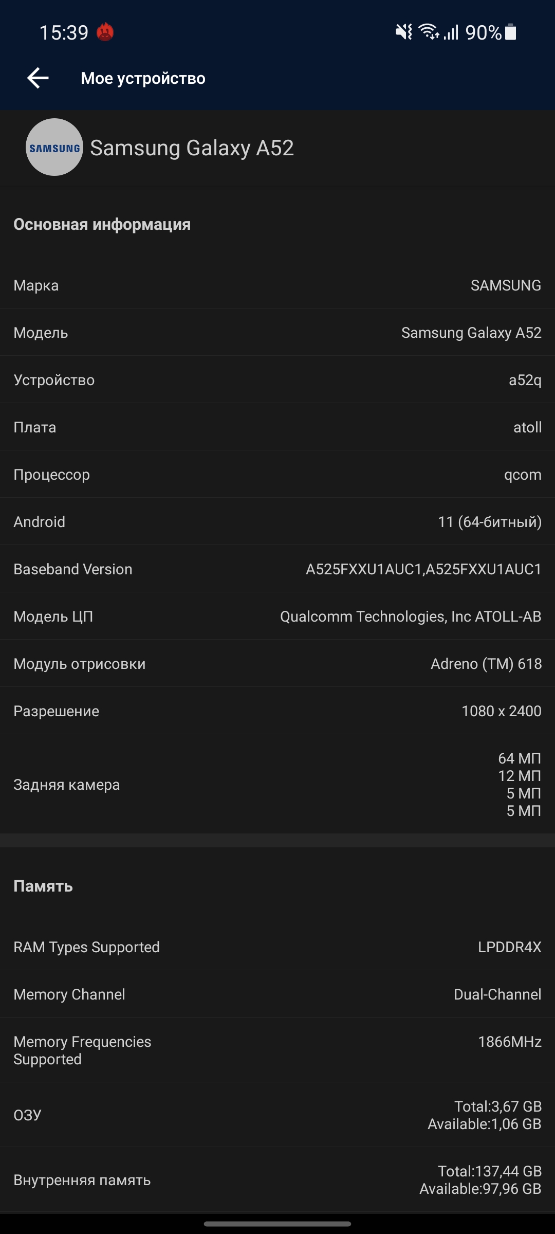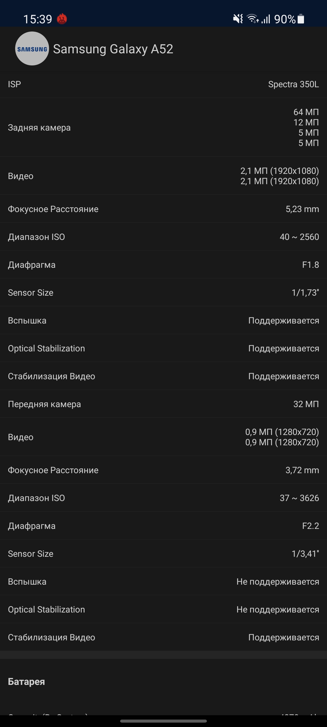 Основная камера Samsung Galaxy A52: