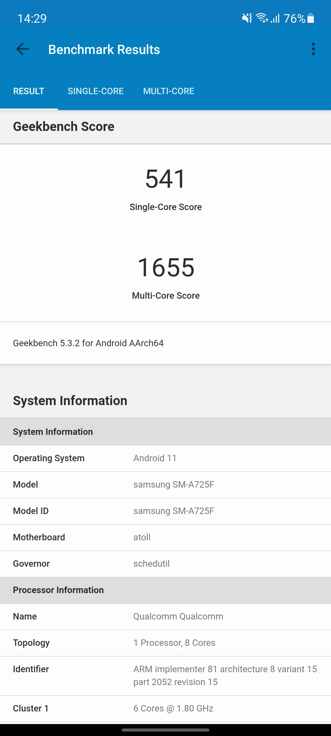 | Samsung Galaxy A72 | 414.808 | 0 | ∞ |