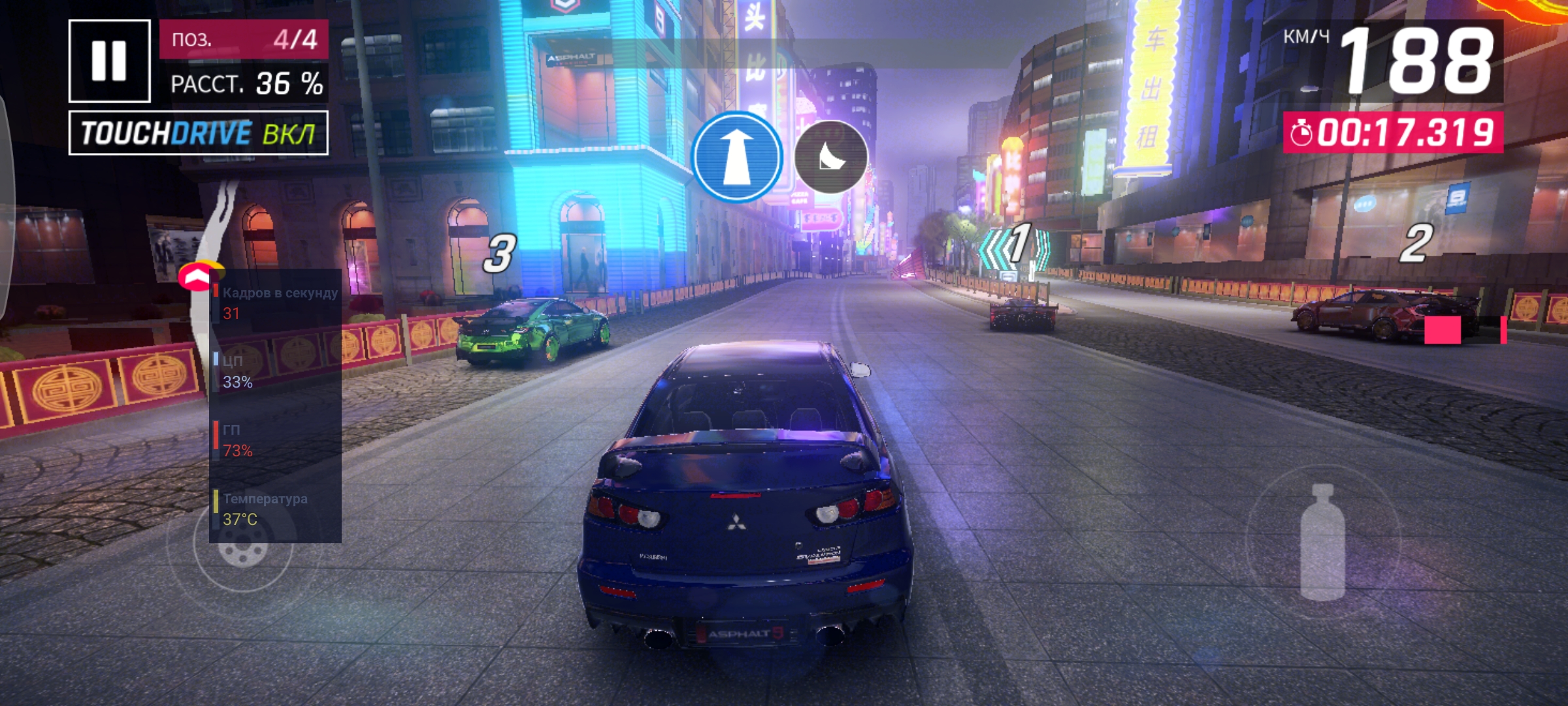 Смартфоны вполне тянут современные игры, хотя всё-таки до заветных 60 FPS кадровая частота при высоких настройках графики не дотягивает. Call of Duty Mobile — 40-45 FPS, PUBG Mobile — стабильные 30 FPS, Asphalt 9 — аналогично 30 FPS.