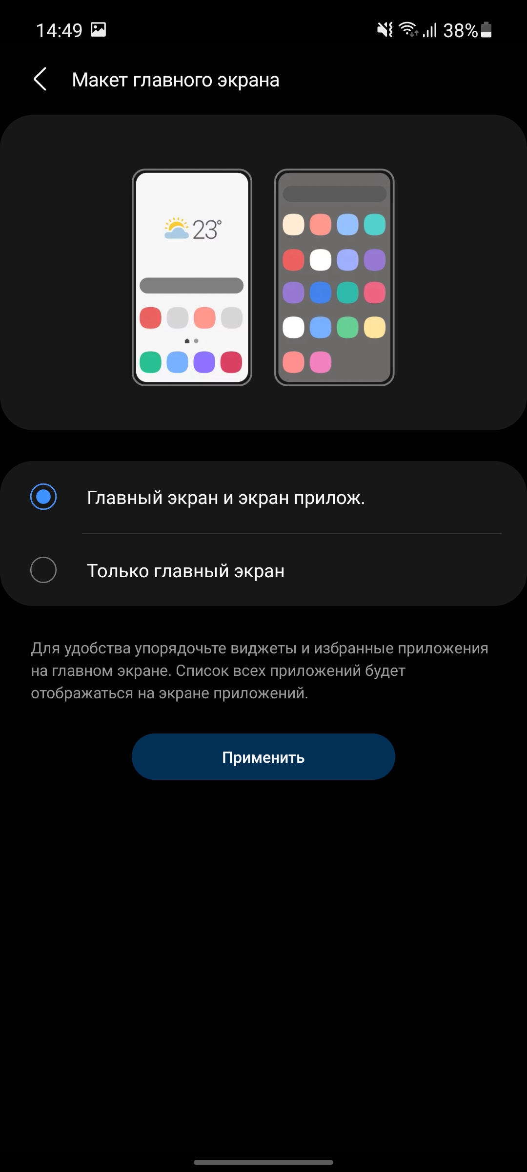 В настройках экрана набор приблизительно тот же, что и во флагманских смартфонах Samsung. Есть тёмная тема, выбор масштаба интерфейса, шрифта, комфорт для глаз (фильтр синего), который может работать в автоматическом режиме и корректировать картинку в зависимости от времени суток. И два режима отображения цветов: насыщенный (с расширенным цветовым охватом) и естественный.