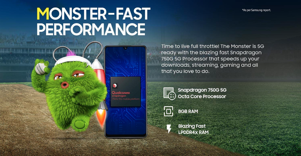 Работает Galaxy M42 5G под управлением восьмиядерного процессора Snapdragon 750G. Он построен по 8-нанометровому техпроцессу и имеет два высокопроизводительных ядра Cortex-A77 с частотой 2.2 ГГц, а также шесть энергоэффективных Cortex-A55 с частотой 1.8 ГГц. SoC поставляется со встроенным 5G-модемом. Из коробки в устройстве установлена свежая операционная систему Android 11 с фирменной оболочкой One UI 3.1.