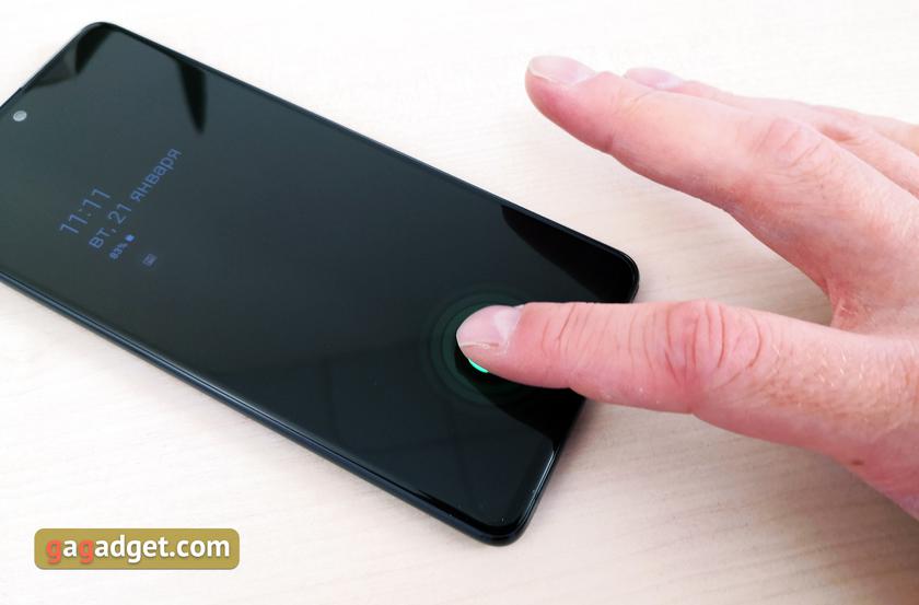 Для разблокировки смартфона предусмотрен стандартный современный набор. Идентификация по лицу владельца, разумеется, исключительно силами фронтальной камеры. Так что слишком безопасным данный метод назвать нельзя, но он явно будет не лишним зимой, когда руки в перчатках. И сканер отпечатка пальцев в экране. В отличие от флагманов, используется оптический, а не ультразвуковой вариант. Но работает он очень даже неплохо: точно и довольно быстро. Не молниеносно, но вполне в комфортных пределах.