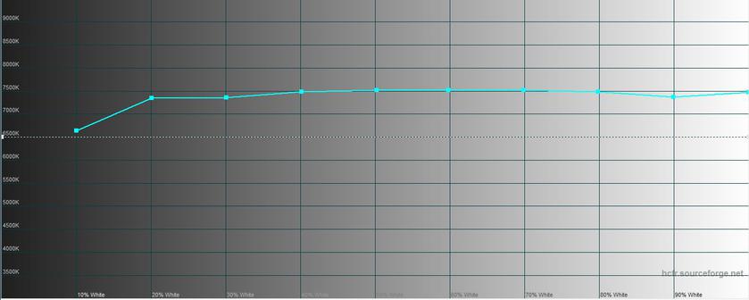 В "насыщенном" режиме экран максимальная яркость немного выше 398.897 кд/м2. Перекос к холодным оттенкам чуть больше, но тоже в пределах разумного. Цветовой охват существенно шире sRGB, как и во всех AMOLED: