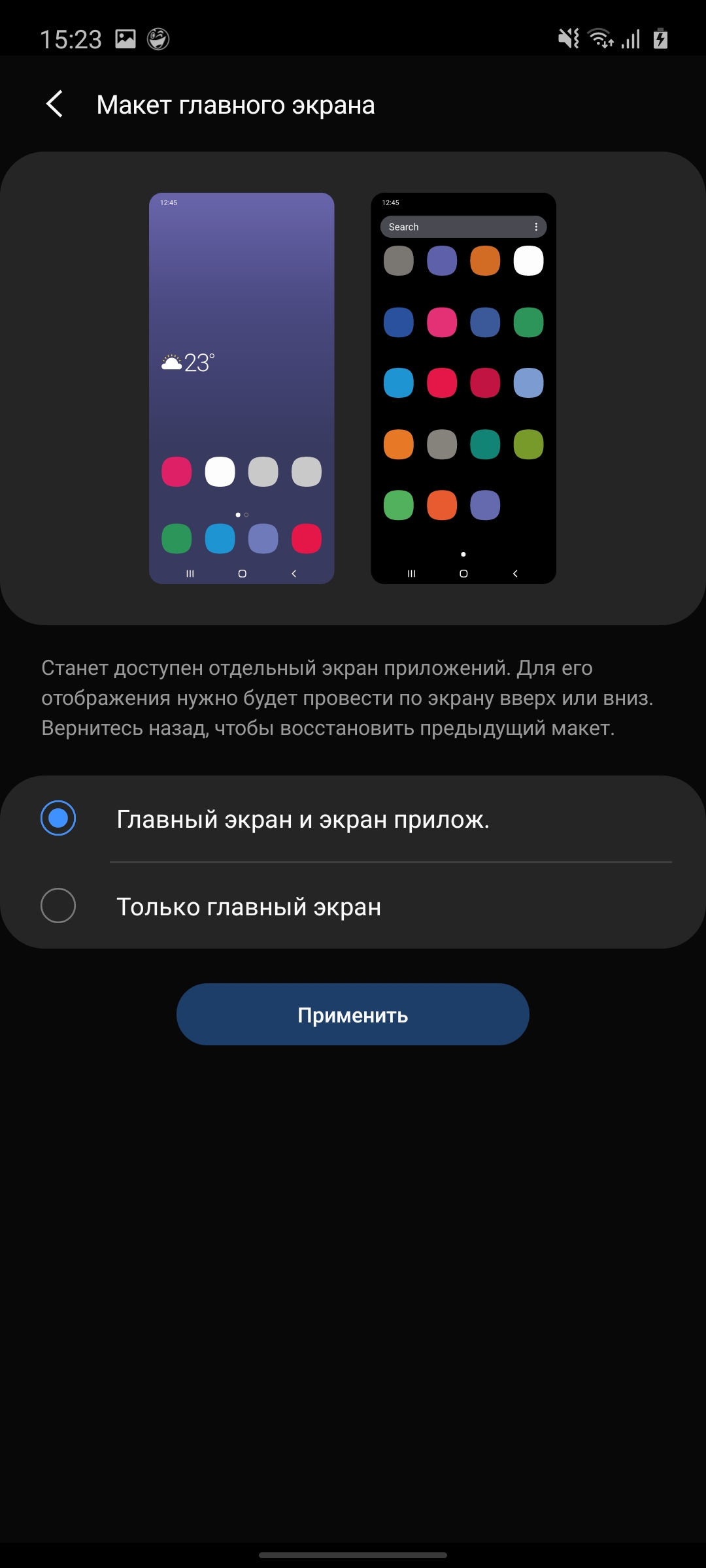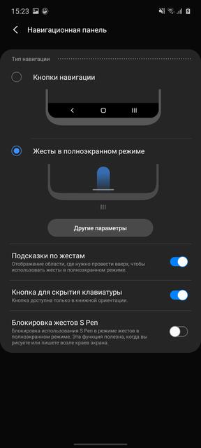 В предыдущей версии One UI было два варианта навигации: стандартная панель с кнопками и жестовая навигация. Но последняя фактически была дублированием тех же кнопок, только на них надо было не наживать, а тянуть от нужной части нижнего края экрана вверх. Теперь добавился и более удобный жестовый вариант навигации, как в новом Android 10. Назад — движение от правого или левого края экрана, домой — от нижнего, диспетчер приложений — также потянуть от нижнего края и задержать палец. Этот вариант мне кажется удобнее и логичнее.