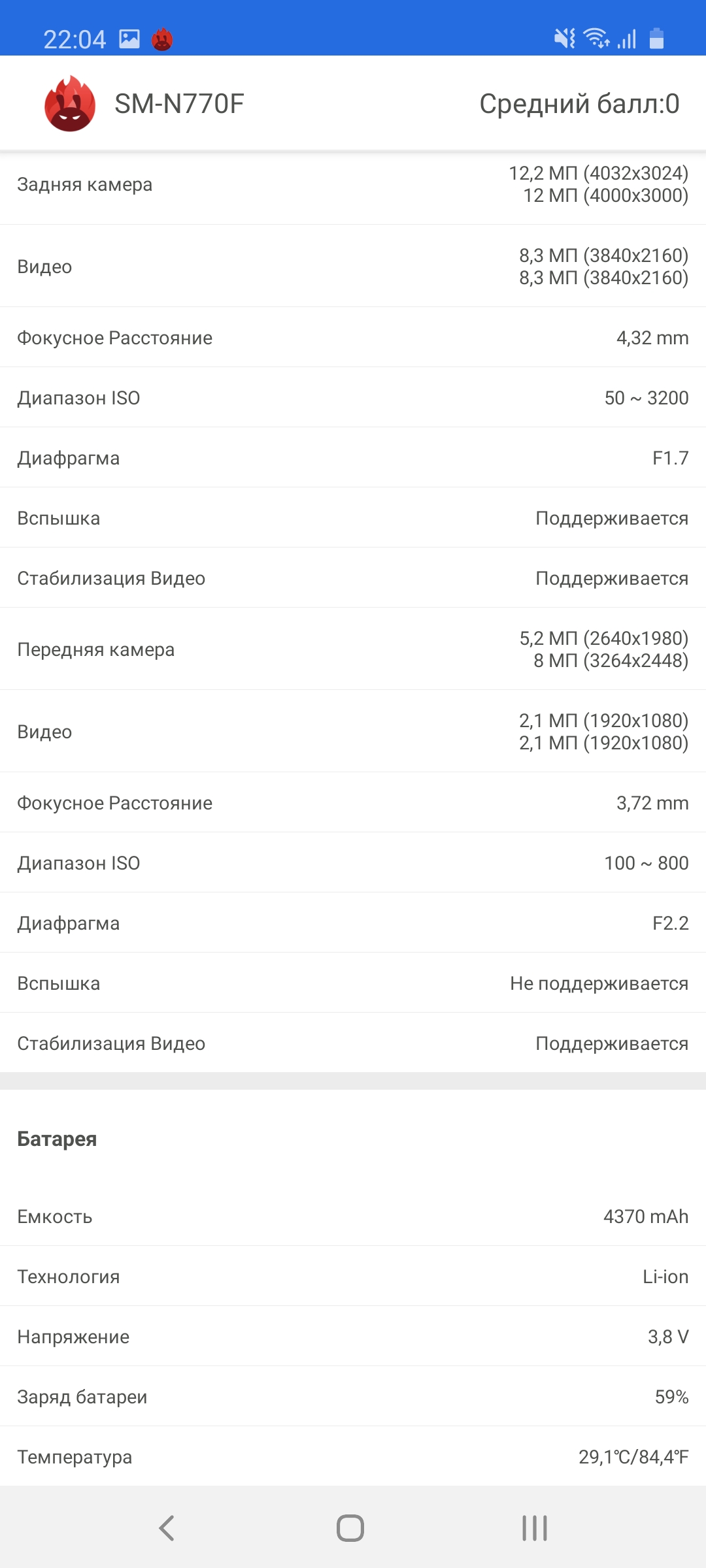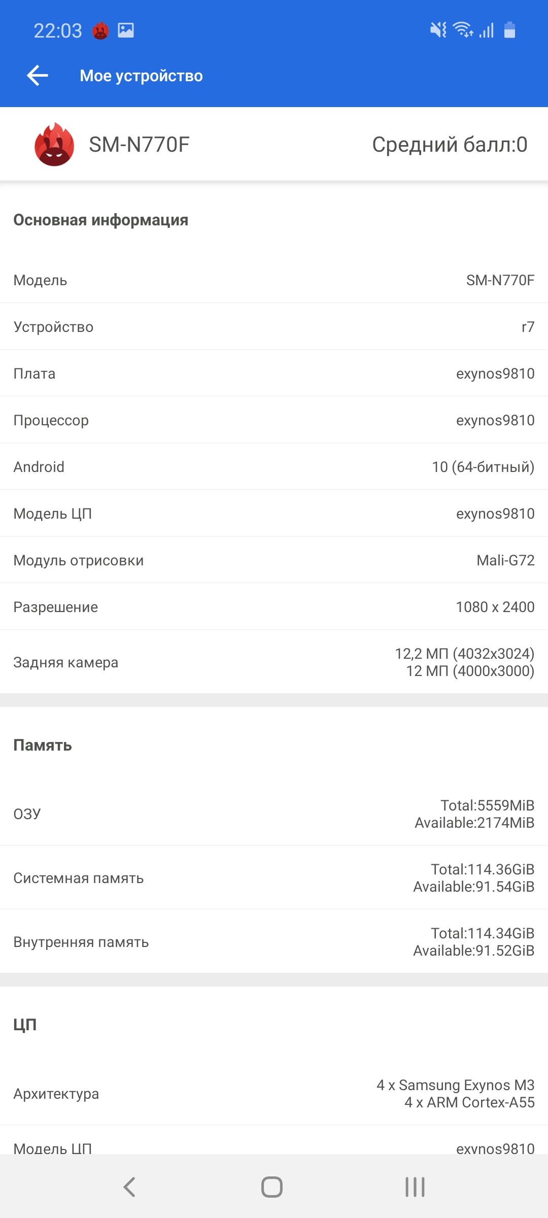 | Технические характеристики Samsung Galaxy Note10 Lite | |