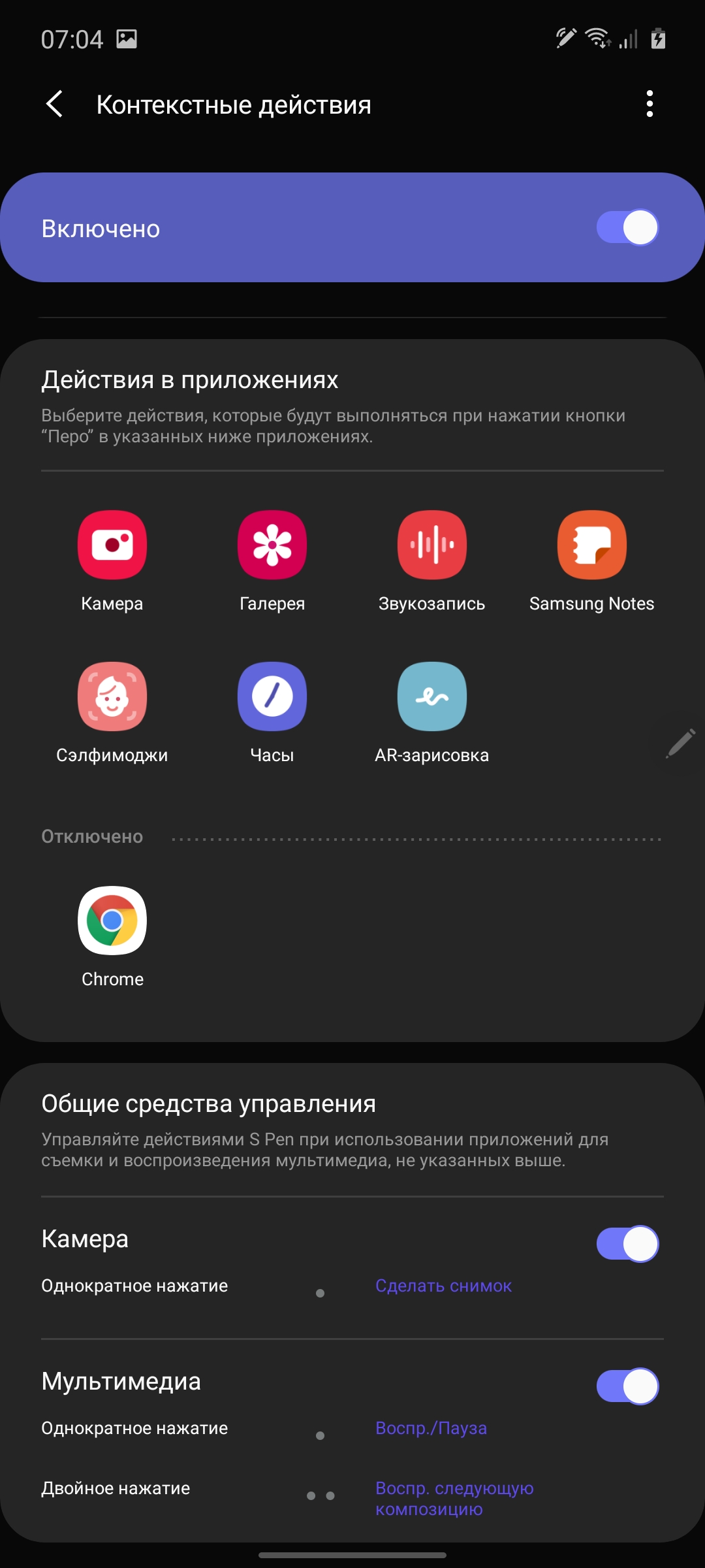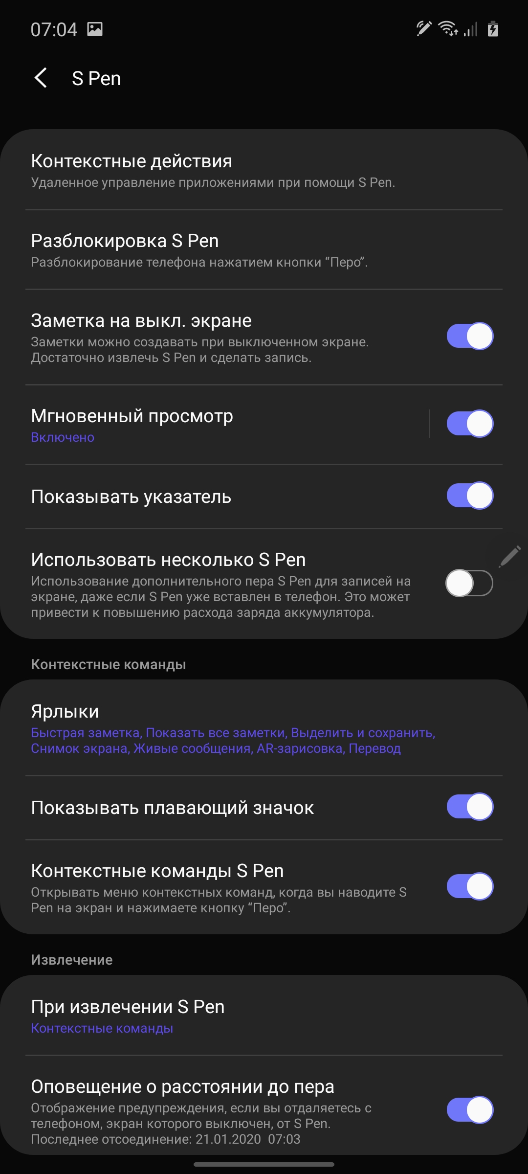 Стилус S Pen похоже, перекочевал с Galaxy Note9. Он умеет распознавать 4096 степеней силы нажатия, определять наклон и оснащён одной физической кнопкой. Есть куча разных приблуд для рисования и быстрых рукописных заметок. Есть возможность скриншота части экрана с сохранением и аннотациями, живые GIF-сообщения и переводчик. S Pen оснащён Bluetooth и встроенным аккумулятором. Гироскопа, как в Galaxy Note10/10+ нет, дополнительные жесты стилусом в воздухе не поддерживаются, но как пульт ДУ стилус можно с помощью кнопки. Можно переключать треки в плеере, листать слайды в презентации, делать фото и так далее.