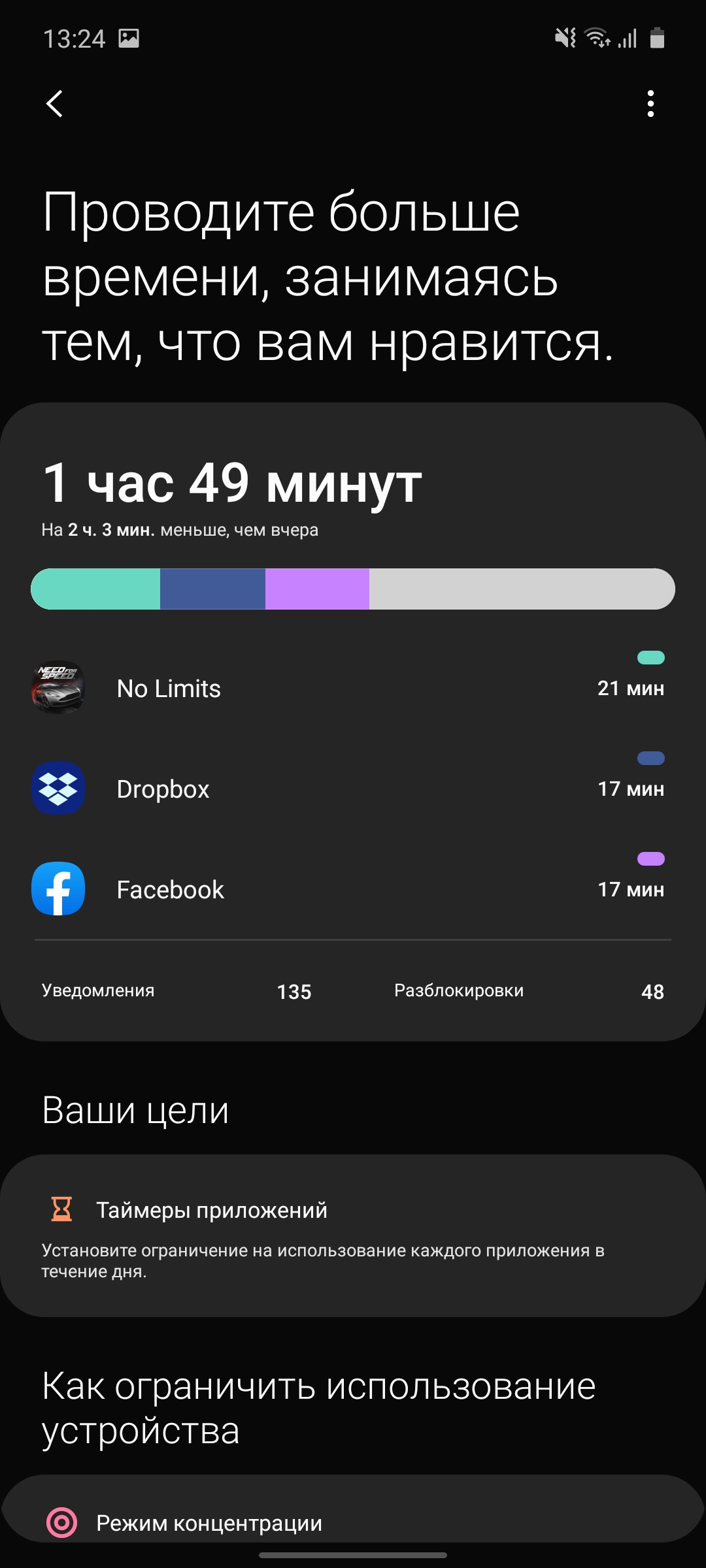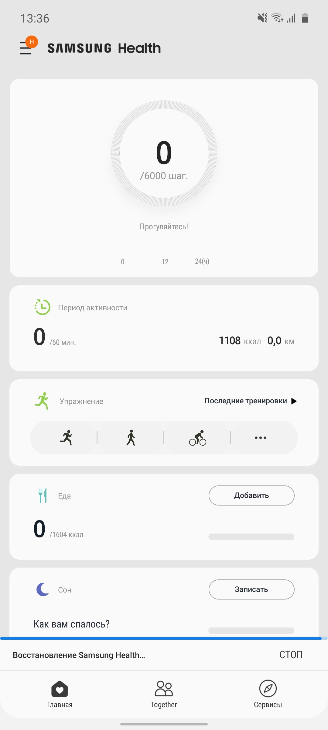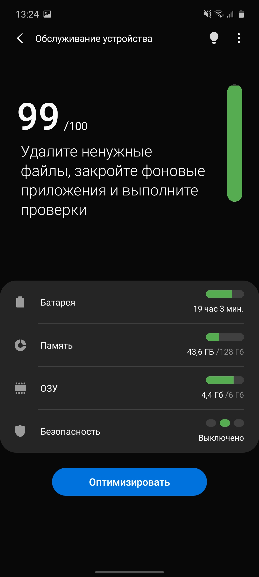 Предустановленного ПО не так много. Помимо вышеупомянутых плеера, радио и прочих необходимых приложений, есть утилита для оптимизации смартфона (очистка ОЗУ, памяти, диагностика), традиционный ассистент Bixby, файловый менеджер, заметки и S Health. Что интересно, S Health похоже ещё не обновили: интерфейс остаётся светлым при тёмной теме интерфейса.