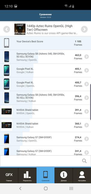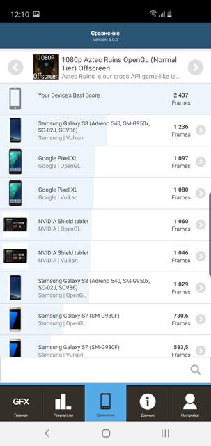 В бенчмарках смартфон демонстрирует аналогичные, а временами и чуть выше результаты, чем мы видели в S10+, что вполне логично. В целом, Samsung Galaxy S10e в топе большинства синтетических тестов на данный момент: