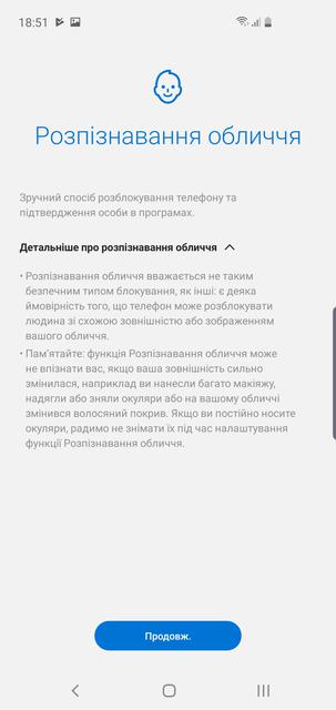 Сканер отпечатка технологически стандартный, но расположен в кнопке включения. Сам по себе очень хорош: точный и молниеносный. Но его расположение будет удобно только для тех, кто использует смартфон правой рукой. Я пользуюсь левой и постоянно возникала необходимость тянуться пальцем, в привычном, "естественном" положении руки указательный палец попросту не дотянивается. Распознавание лица исключительно формальное. Оно есть, но безопасным его назвать нельзя. Samsung и сама об этом предупреждает.
