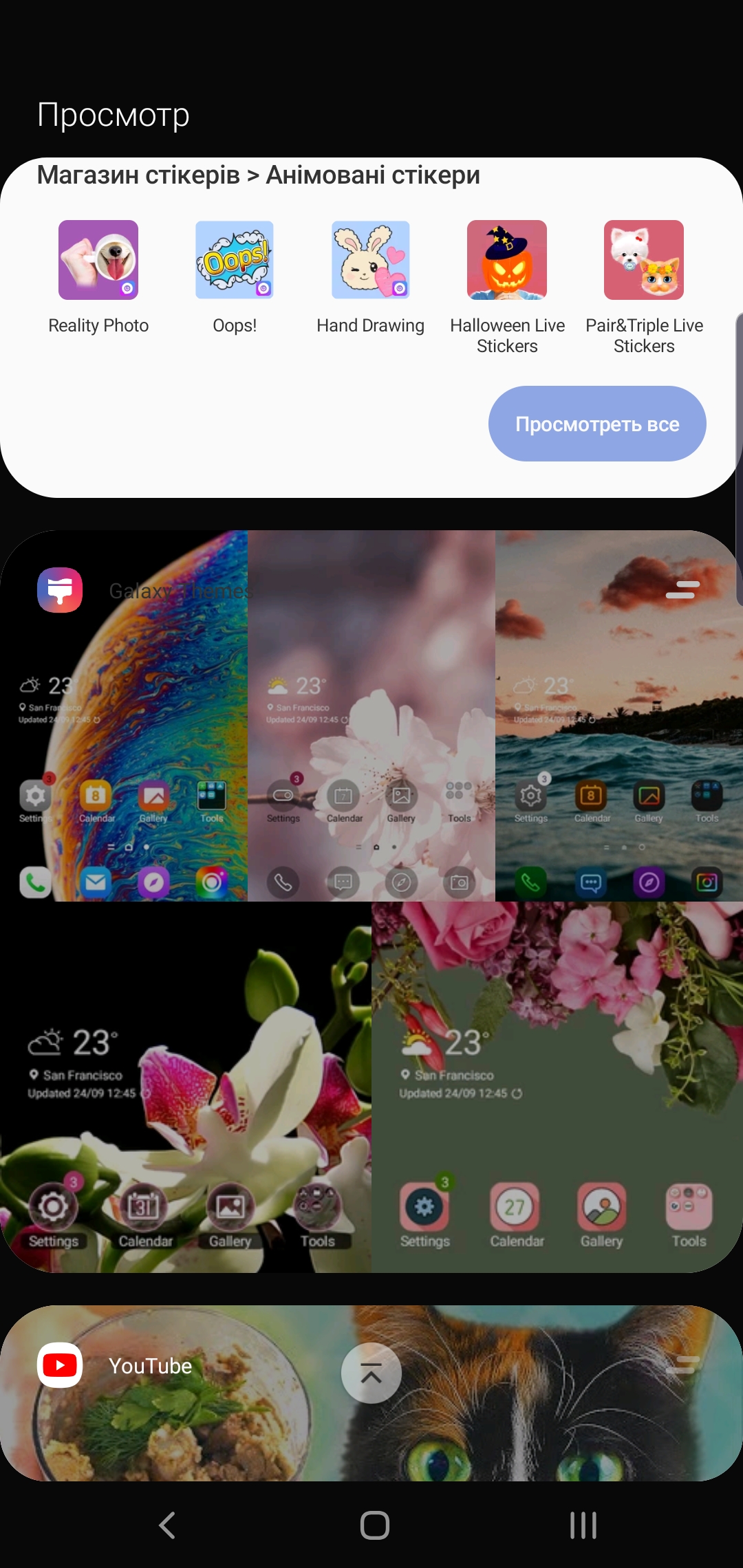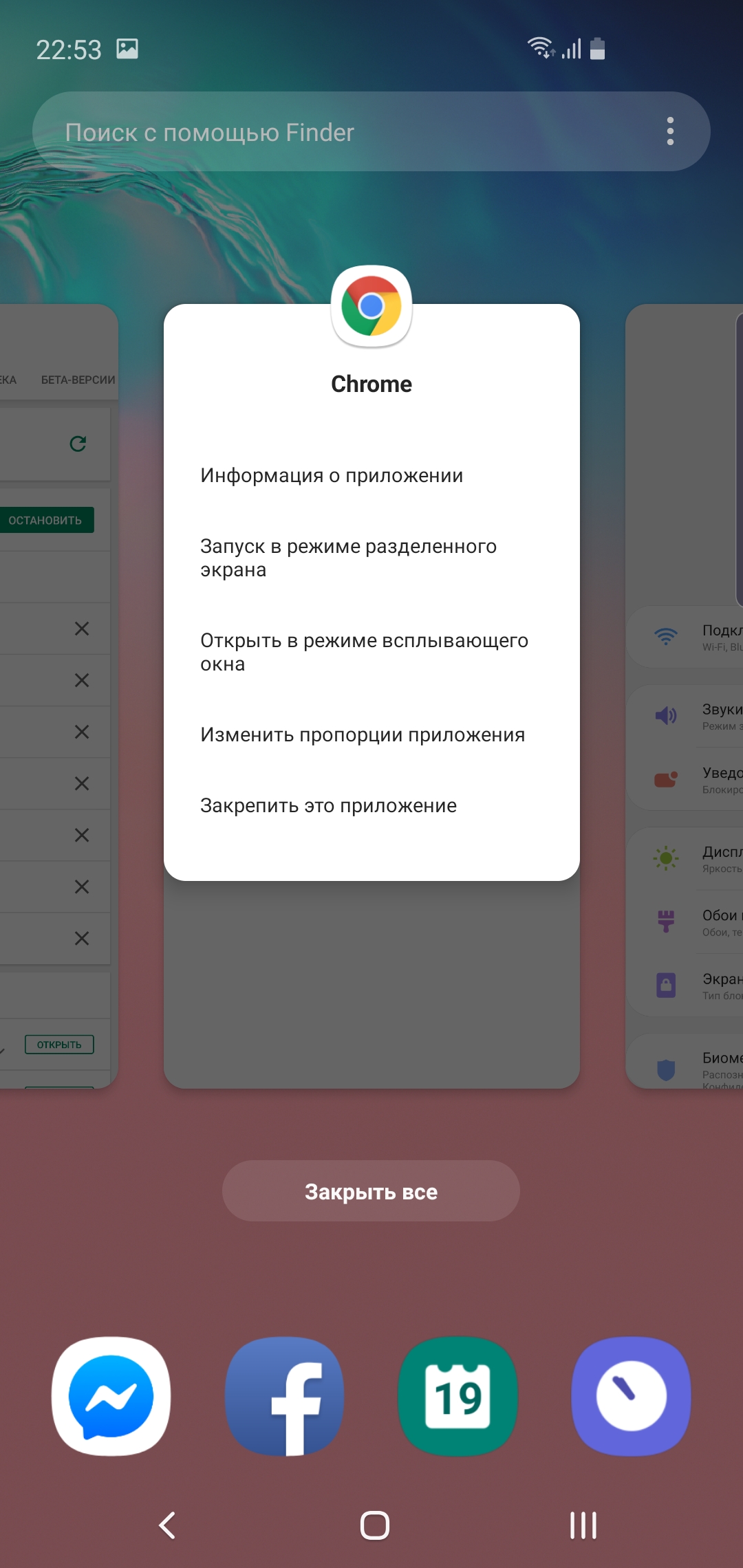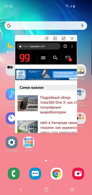 Диспетчер приложений - немного расширенный по функциональности вариант Android 9 Pie с горизонтальной каруселью карточек, куда добавили возможность открывать приложения в уменьшенном окне, делать их прозрачными или сворачивать до маленькой пиктограммы (помимо двухоконного режима):