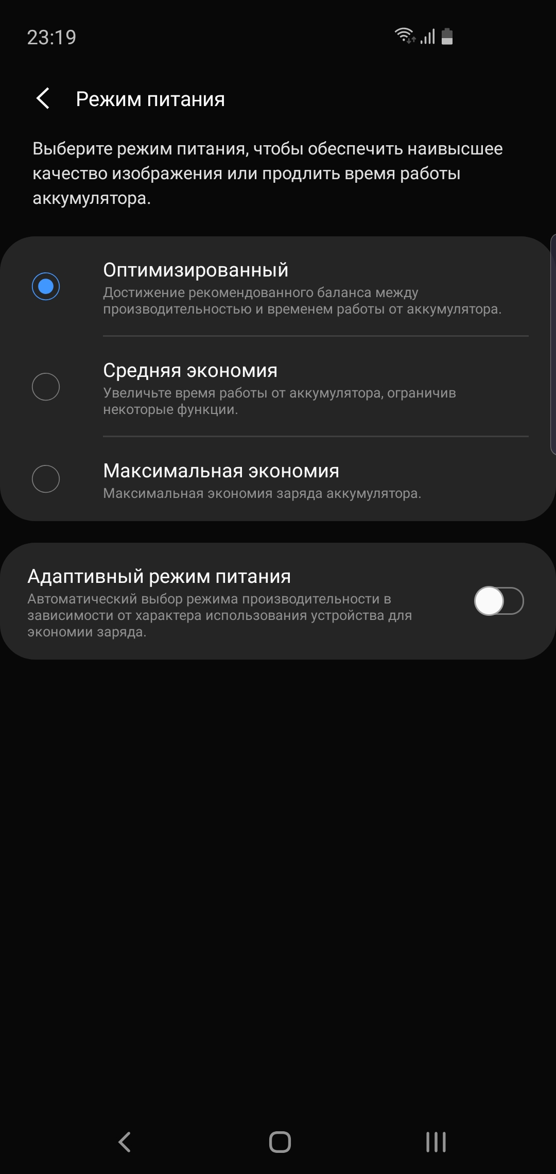 В смартфоне установлен 5.8-дюймовый Infitity-O Dynamic AMOLED-экран с соотношением сторон 19:9 и разрешением 2280х1080, плотность пикселей — 438 ppi. Как и старшие модели, поддерживает HDR10+. Визуально претензий к экрану не возникает: картинка сочная, углы обзора отличные. В настройках всё приблизительно так же: яркость, масштаб, размер шрифта, ночной режим и так далее: