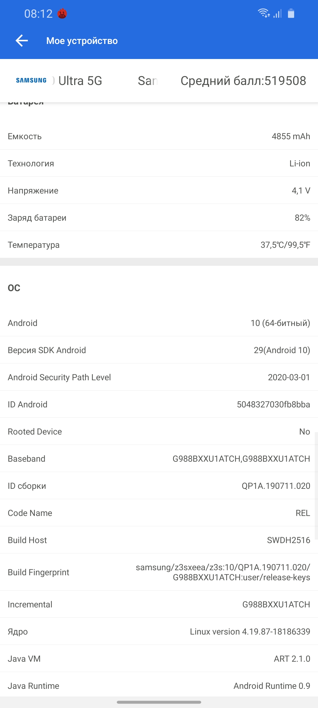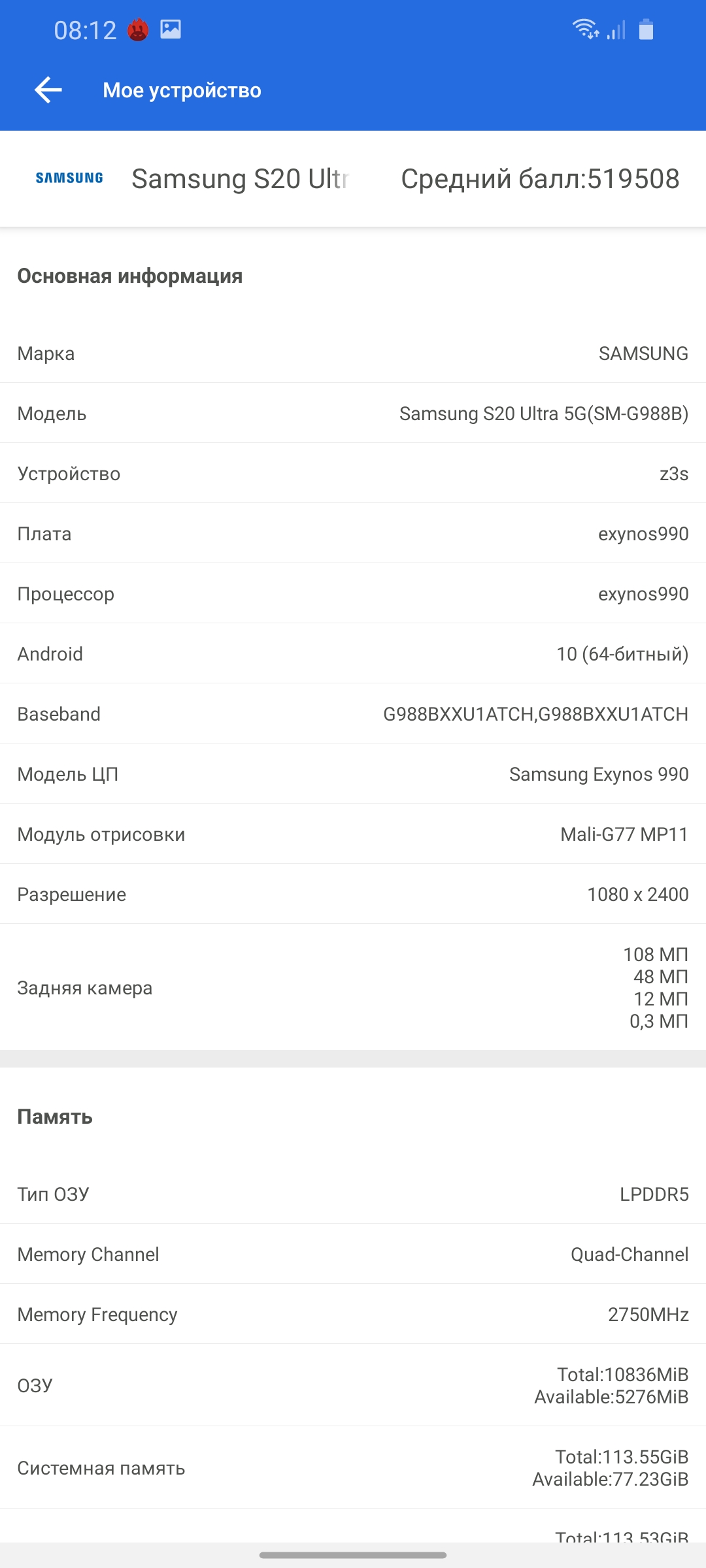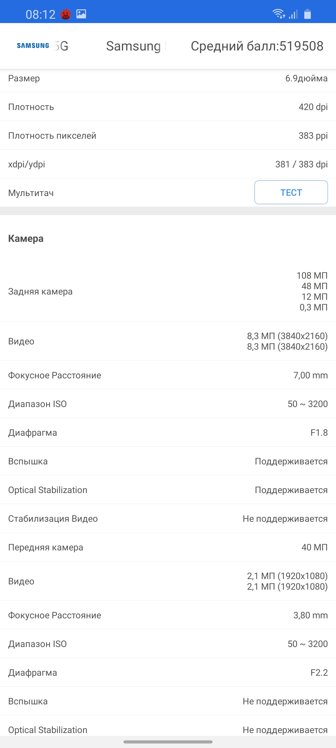 | Технические характеристики Samsung Galaxy S20 Ultra | |