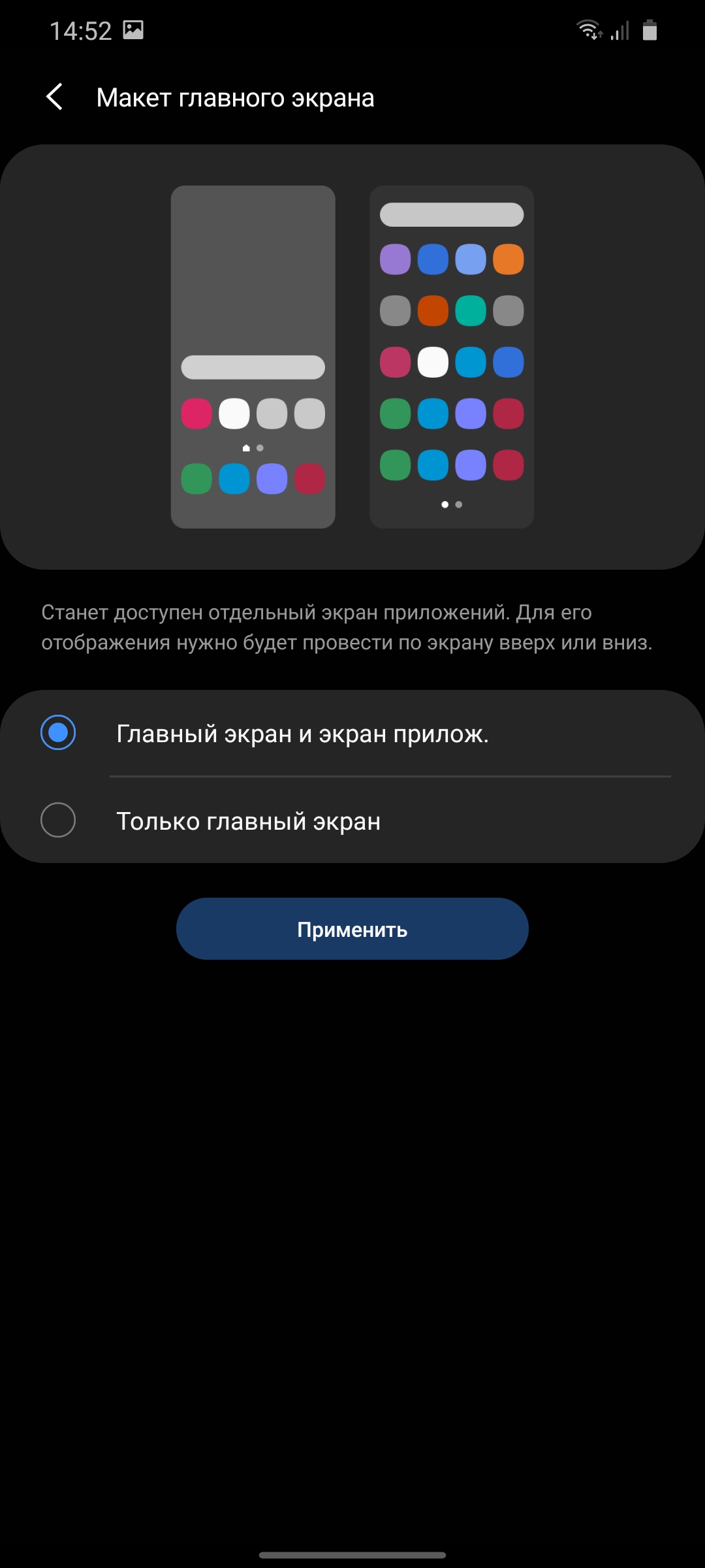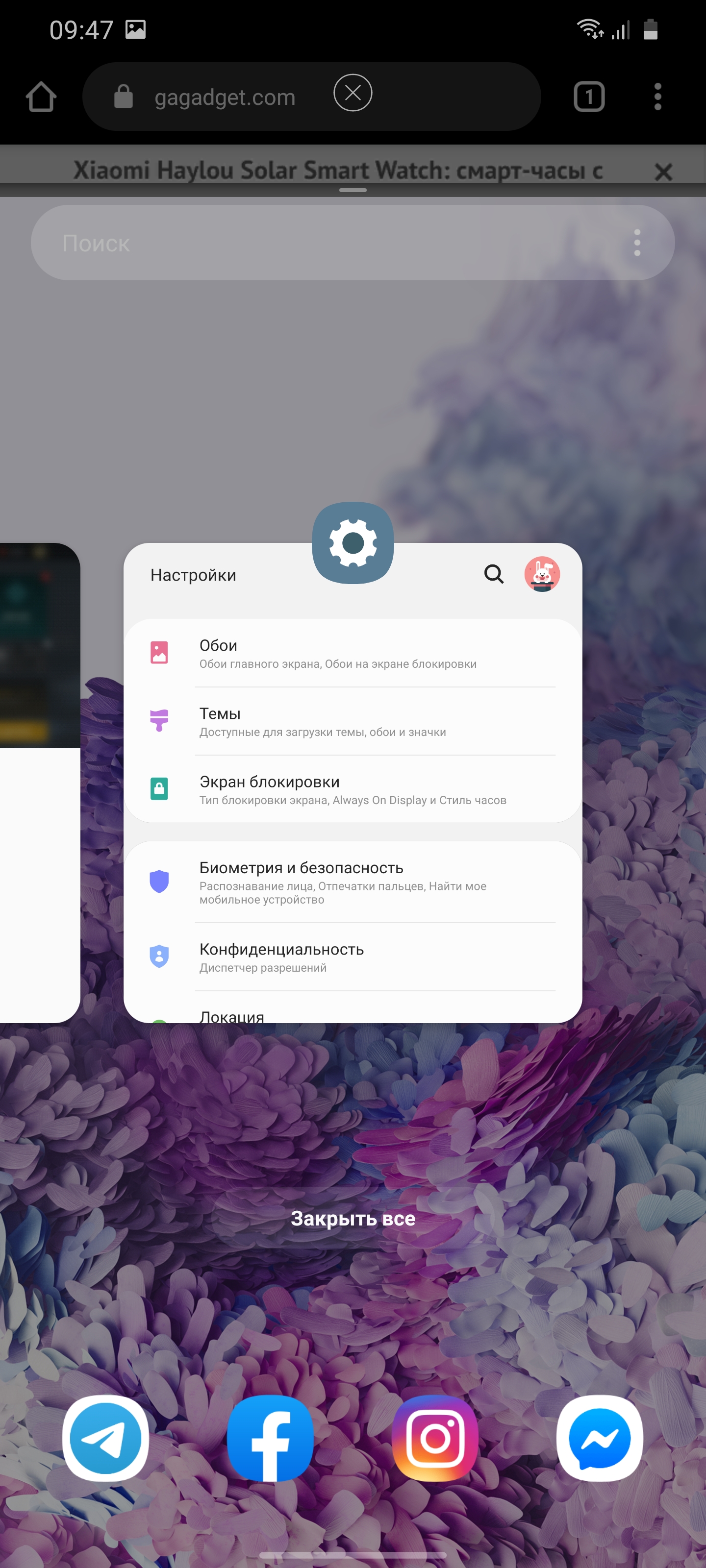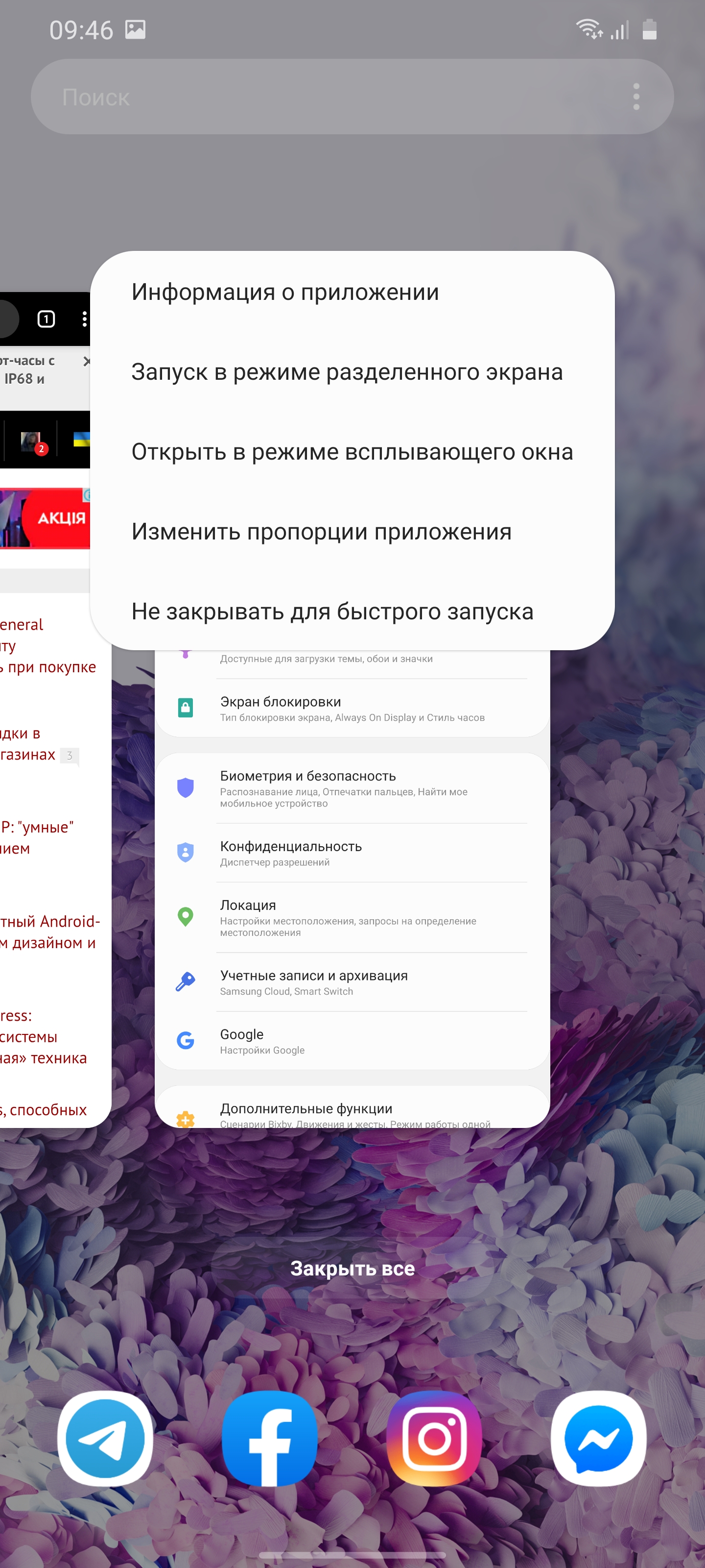 Диспетчер приложений знаком по прошлым версиям: стандартная горизонтальная карусель карточек. Помимо двухоконного режима есть возможность запуска приложений в окне с регулируемым размером и прозрачностью: