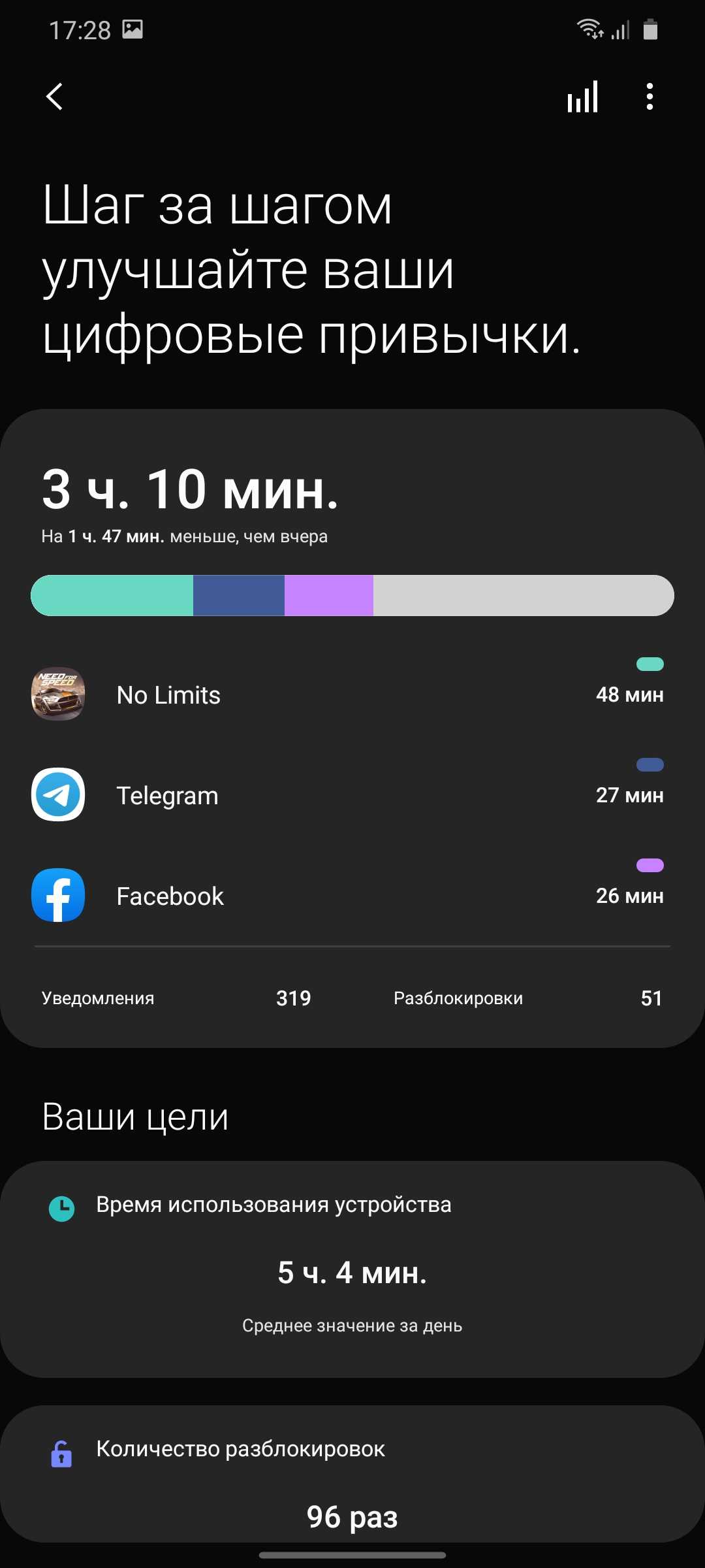 Есть два режима отображения цветов: "насыщенный" с ручной регулировкой цветопередачи и "Естественный". Естественный по цветовому охвату ближе к sRGB, Насыщенный — с расширенным, типичным для AMOLED цветовым охватом, более яркими цветами.