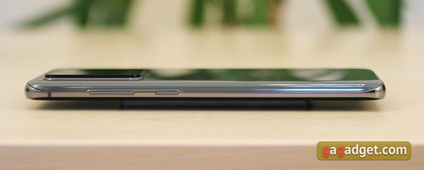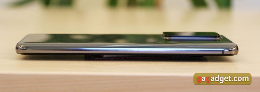В смартфоне компания решила в полной мере оправдать слово Ultra в названии. Смартфон получился очень крупным, увесистым, а диагональ экрана составляет аж 6.9 дюйма, что даже больше, чем у Galaxy Note10+. Используется новый экран Infinity-O Dynamic AMOLED 2X с разрешением 3200х1440, круглым вырезом для фронтальной камеры и частотой обновления 120 Гц. Тыльная квадрокамера может похвастаться основным 108-мегапиксельным модулем и 100х "космическим зумом", а также возможностью записи видео в разрешении 8К. Внутри — новая флагманская 7-нм EUV платформа Samsung Exynos 990, 12 ГБ оперативной и 128 Гб встроенной памяти, которую можно расширить картой MicroSD. Лоток, разумеется, гибридный. Смартфон имеет пыле, и влагозащиту по стандарту IP68, 3.5-мм разъём для наушников отсутствует. И стандартные переходники не работают. Ёмкость аккумулятора — 5000 мАч. Заявлена поддержка быстрой проводной (45 Вт) и беспроводной (15 Вт) зарядки, а также обнратной беспроводной зарядки (9 Вт). По интерфейсам есть двухдиапазонный Wi-Fi с поддержкой ax (Wi-Fi 6), Bluetooth 5.0 с поддержкой кодеков aptX и aptX HD и, разумеется, NFC.