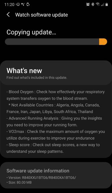 Как сообщают наши коллеги из SamMobile, прошивка весит 80 МБ и в ней добавили множество полезных изменений, о которых говорили на презентации часов. Прежде всего, разработчики активировали датчик SpO2. С помощью него можно измерять уровень кислорода крови. К сожалению, такая функция будет работать не во всех странах.