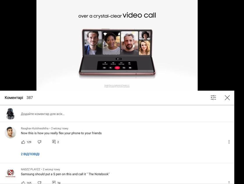 Второй режим использует основной экран, который разделяется на две независимые зоны, превращаясь в подобие субноутбука, который помещается в кармане. То есть верхняя часть играет роль дисплея, а нижняя — сенсорного экрана для управления происходящим. Например, можно смотреть видео на YouTube и читать комментарии, пролистывая их на нижней части экрана. Скриншот ниже, конечно, двумерный и не может показать вам изгиба экрана, но снят он именно в Flex Mode.