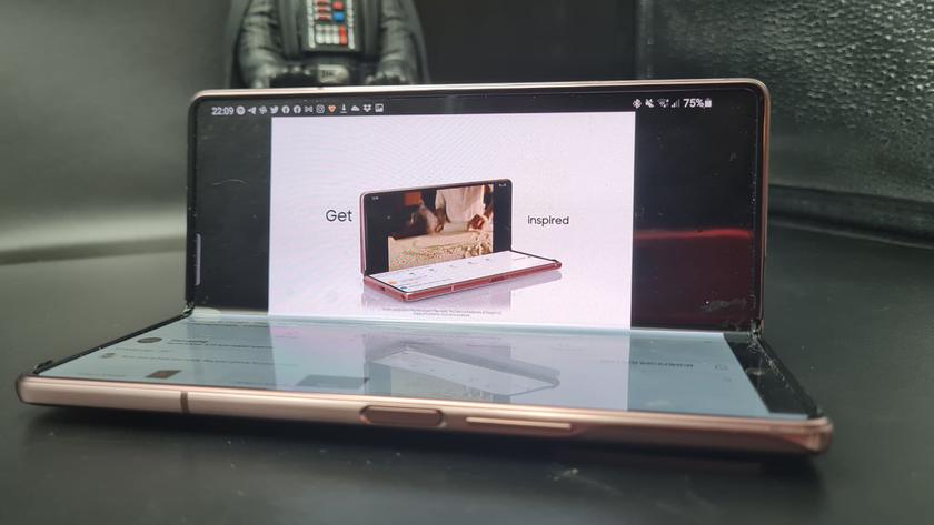 Сгиб экрана легко прощупывается в разложенном состоянии — он чуть-чуть выступает, это особенность технологии, точно так же прощупывается сгиб и у более компактного Z Flip. Возможно, в будущем от этого избавятся, но пока так. Лично у меня это неудобств не вызывает от слова совсем, но я не исключаю, что найдутся эстеты, которым это будет не по душе.