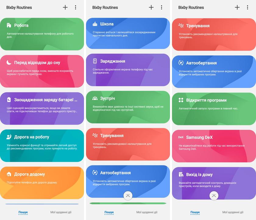 И таких сценариев можно создать не один, не два, а десятки. И все они будут учитывать еще и состояние дисплея — что вы предпочитаете делать на внешнем либо основном дисплее. Либо вообще удобнее использовать Flex Mode (например, для видеозвонков тех же). Помимо своих сценариев, Samsung предлагает полтора десятка готовых: