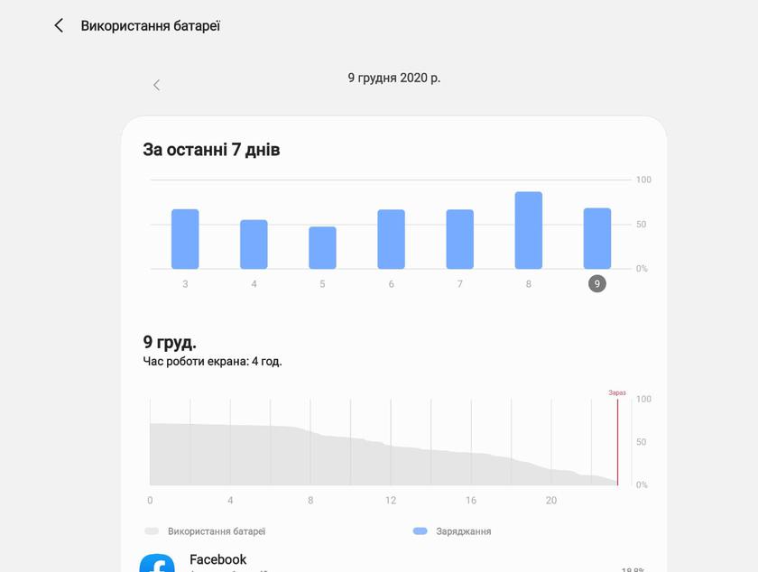 Если посмотреть на недельный график использования аккумулятора, то видно, что ни в один из дней недели я не разряжал смартфон полностью. И последний день на графике он разрядился до 3% заряда к 8 часам вечера, при этом в полночь был заряжен даже не на 100%. При этом за последние сутки время работы экрана составило 4 часа, хотя было бы здорово, в случае с Galaxy Z Fold 2 разделять данные об использовании обоих экранов, надеюсь, Samsung добавит такую возможность в будущем (а оно у смартфонов серии Fold безоблачное — это очевидно уже сейчас) вместе с возможностью отдельно управлять настройками каждого из дисплеев.