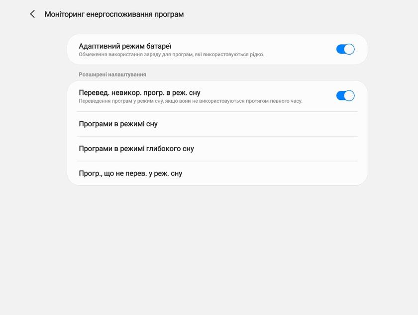 В дополнительных настройках аккумулятора (раздел называется Мониторинг энергопотребления программ) можно управлять автоматикой, позволяющей отслеживать неиспользуемые (погружать их в спящий режим) или редко используемые приложения (принудительно ограничивать их энергопотребление). Что также улучшает показатели автономности Galaxy Z Fold 2.