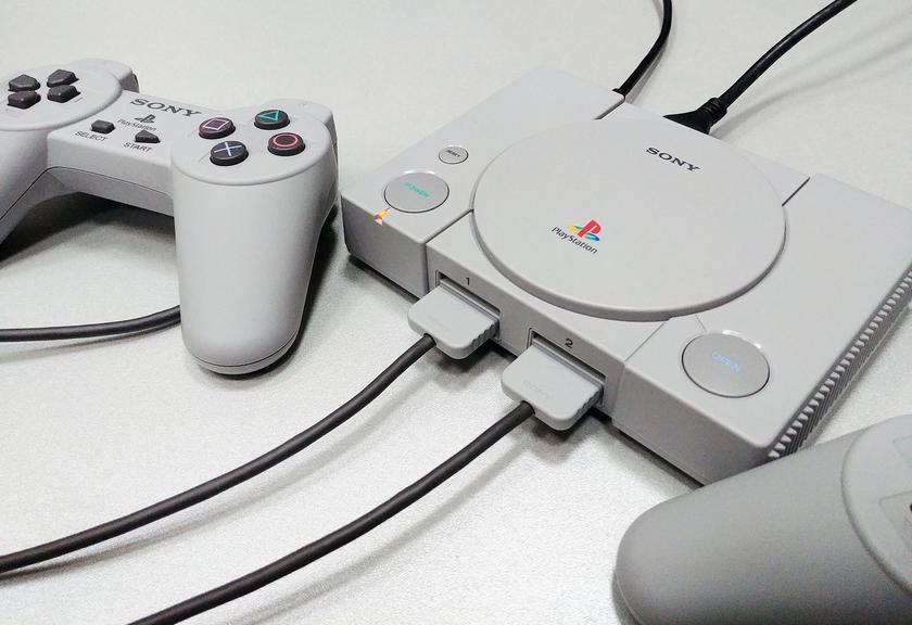 Уменьшенная версия оригинальной игровой консоли Sony PlayStation с двумя отлдскульными геймпадами первой ревизии без стиков и 20 играми прямиком из 90-х.