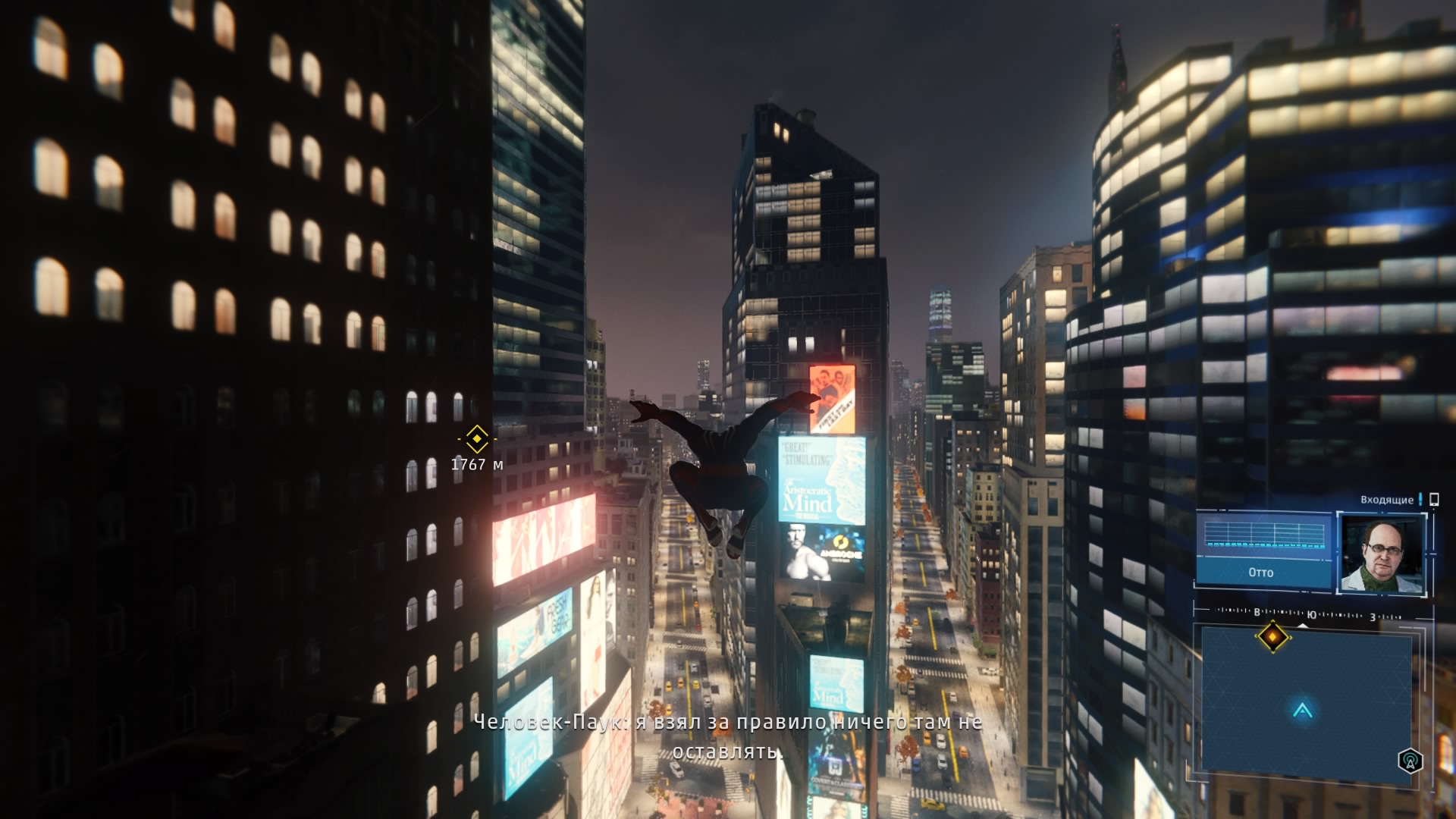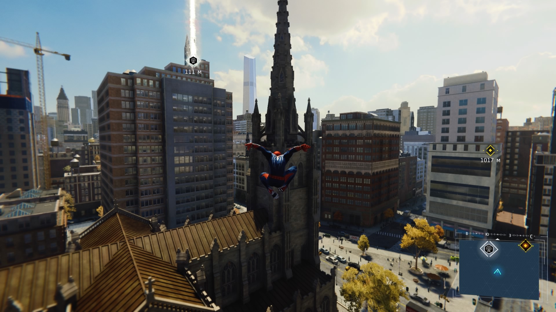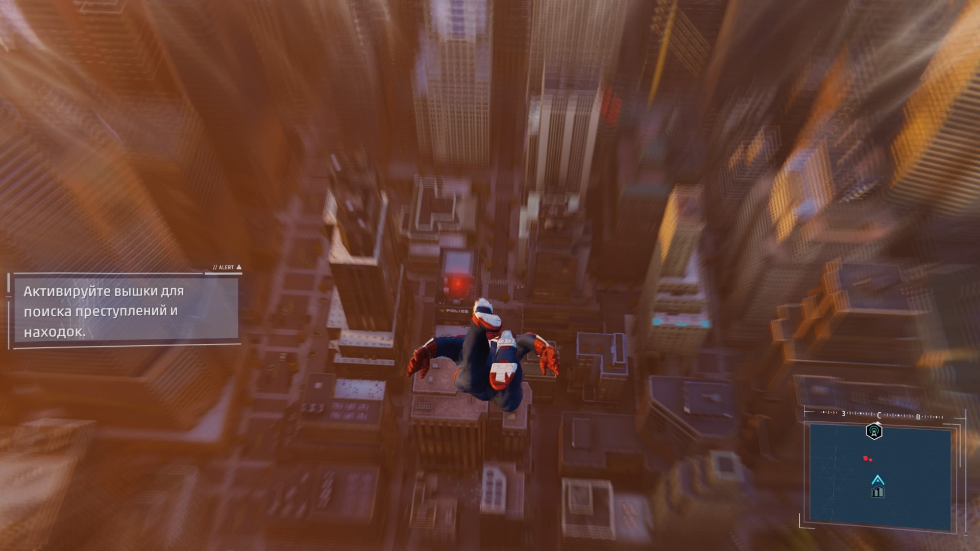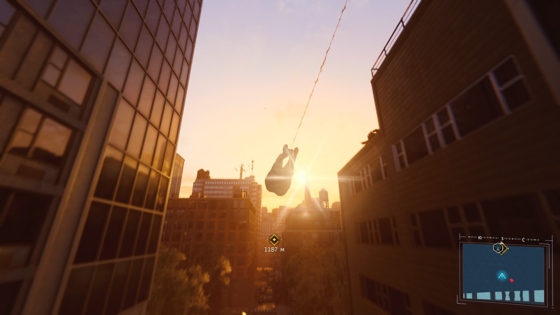 В игре реализована возможность быстрого перемещения между точками, но я ею воспользовался единственный раз: когда её демонстрируют в процессе обучения. Далее не возникало ни малейшего желания, ведь всё это расстояние можно пролететь наслаждаясь видами города, попутно выполняя головокружительные трюки. Да, не стоит ожидать близкого к реальности воссоздания всех законов физики, но это и не нужно. Достаточно помнить, что за небо зацепиться паутиной не получится и для продолжения движения без снижения скорости нужно прокладывать свой маршрут поблизости со зданиями, а с этим никаких сложностей в Нью-Йорке нет.