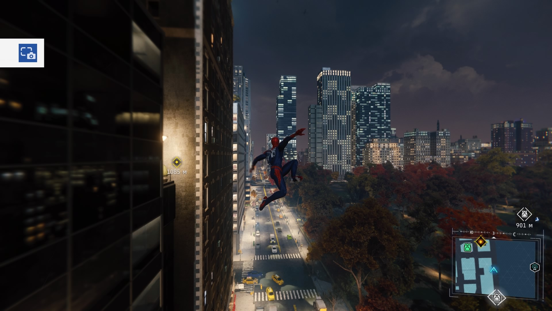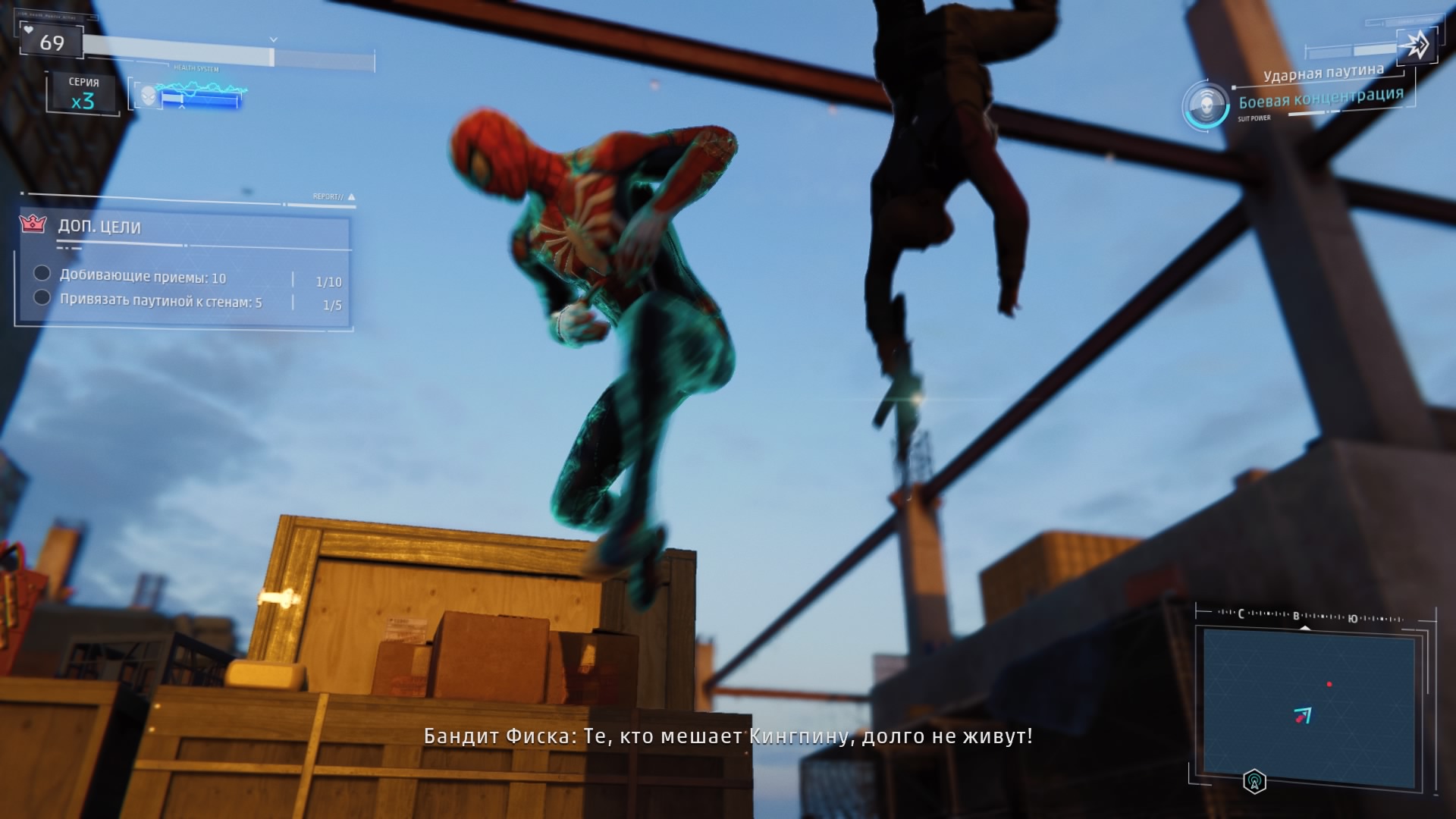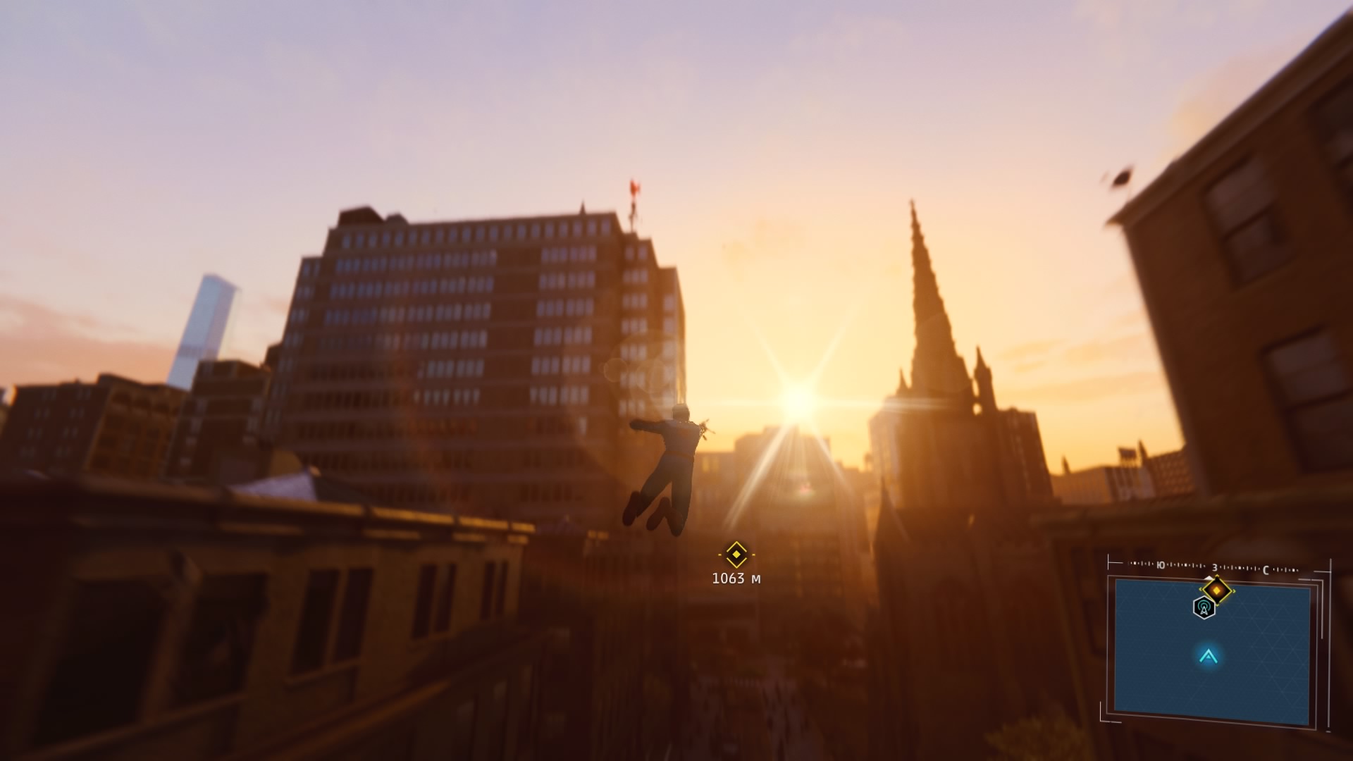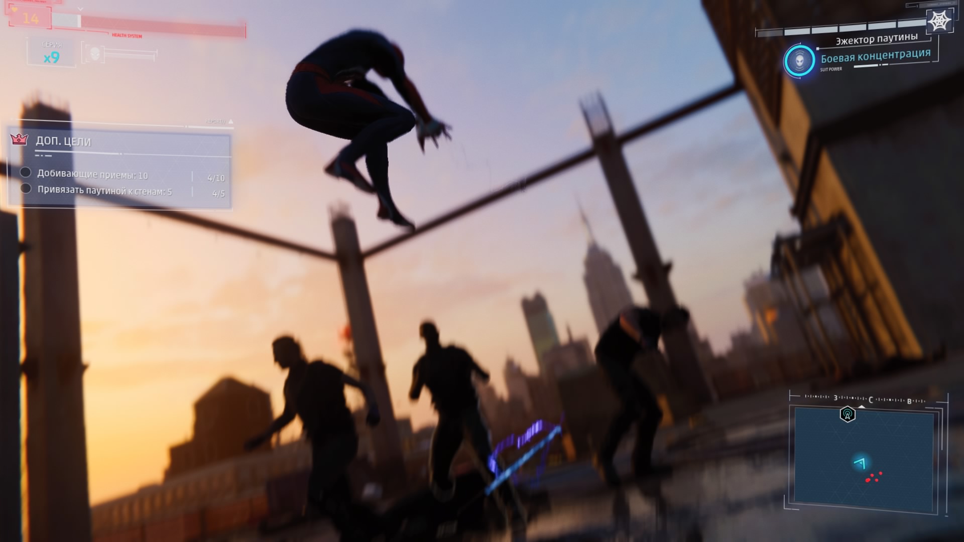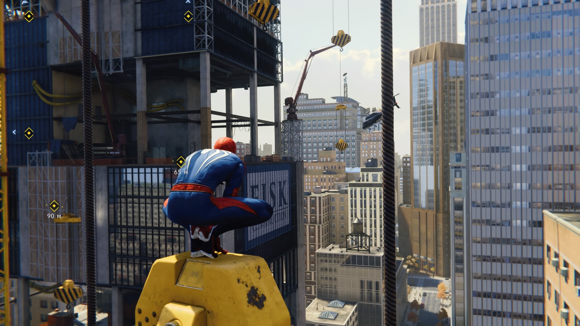 В игре реализована возможность быстрого перемещения между точками, но я ею воспользовался единственный раз: когда её демонстрируют в процессе обучения. Далее не возникало ни малейшего желания, ведь всё это расстояние можно пролететь наслаждаясь видами города, попутно выполняя головокружительные трюки. Да, не стоит ожидать близкого к реальности воссоздания всех законов физики, но это и не нужно. Достаточно помнить, что за небо зацепиться паутиной не получится и для продолжения движения без снижения скорости нужно прокладывать свой маршрут поблизости со зданиями, а с этим никаких сложностей в Нью-Йорке нет.