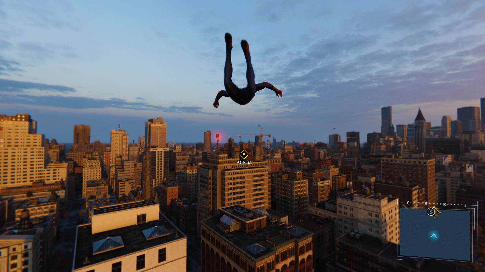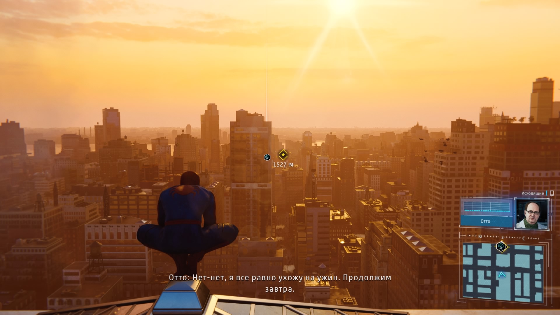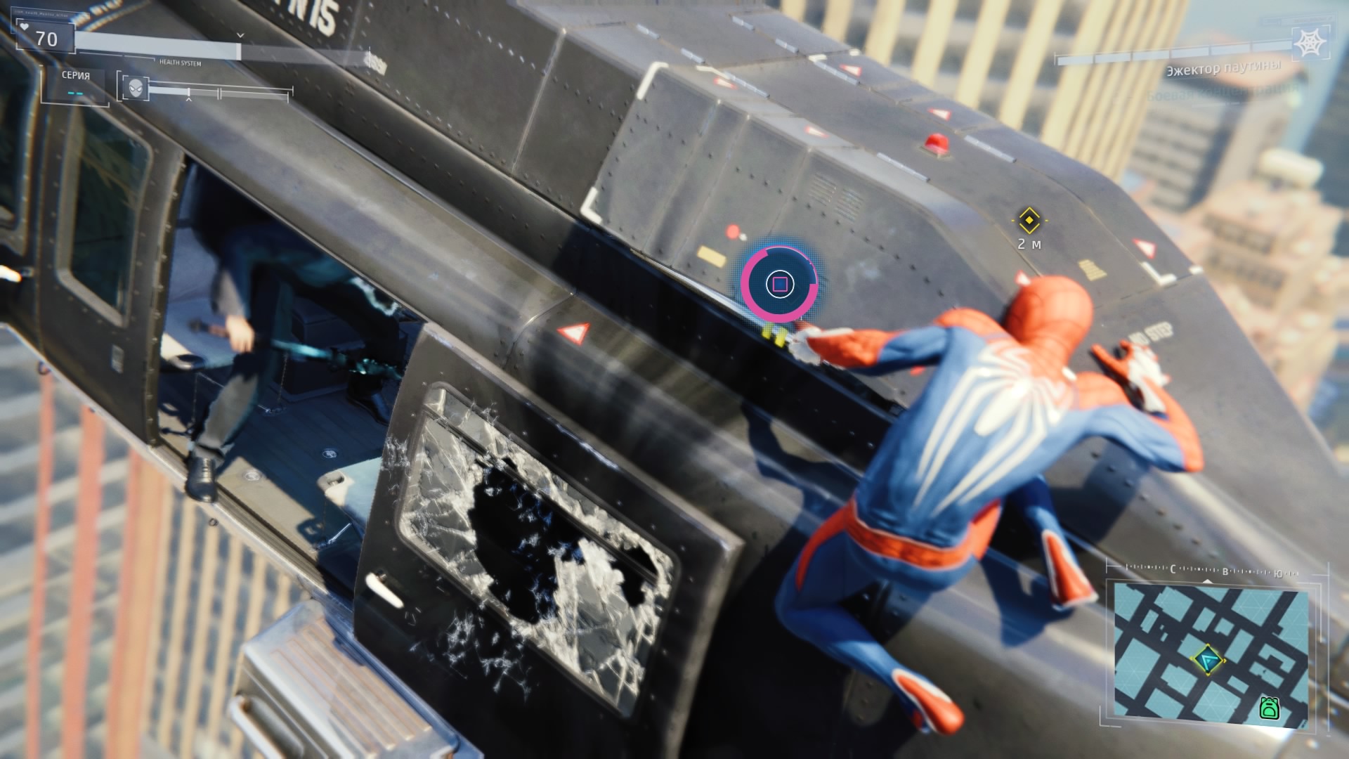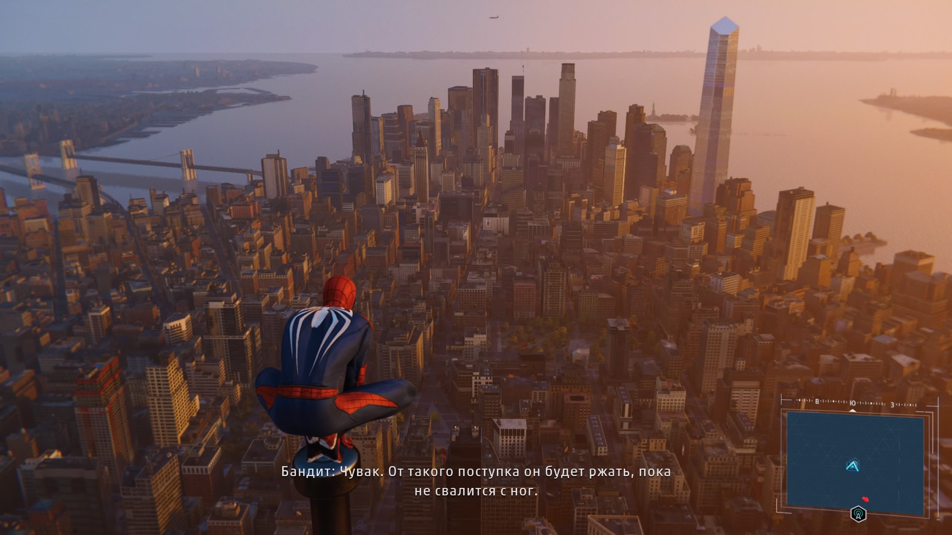 В игре реализована возможность быстрого перемещения между точками, но я ею воспользовался единственный раз: когда её демонстрируют в процессе обучения. Далее не возникало ни малейшего желания, ведь всё это расстояние можно пролететь наслаждаясь видами города, попутно выполняя головокружительные трюки. Да, не стоит ожидать близкого к реальности воссоздания всех законов физики, но это и не нужно. Достаточно помнить, что за небо зацепиться паутиной не получится и для продолжения движения без снижения скорости нужно прокладывать свой маршрут поблизости со зданиями, а с этим никаких сложностей в Нью-Йорке нет.